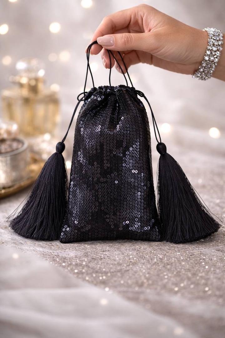 Стильный и эффектный вечерний мешочек, полностью расшитый пайетками. Украшен длинными декоративными кисточками, которые придают образу женственность и роскошь. Идеален для выхода, праздника, фотосессии или в качестве подарка. ✔ Лёгкий и удобный ✔ Стягивается шнурком ✔ Помещаются телефон, ключи, паспорт, косметика. ✔️- 2000 тенге указав промокод X7P5H8. Артикул: 374976