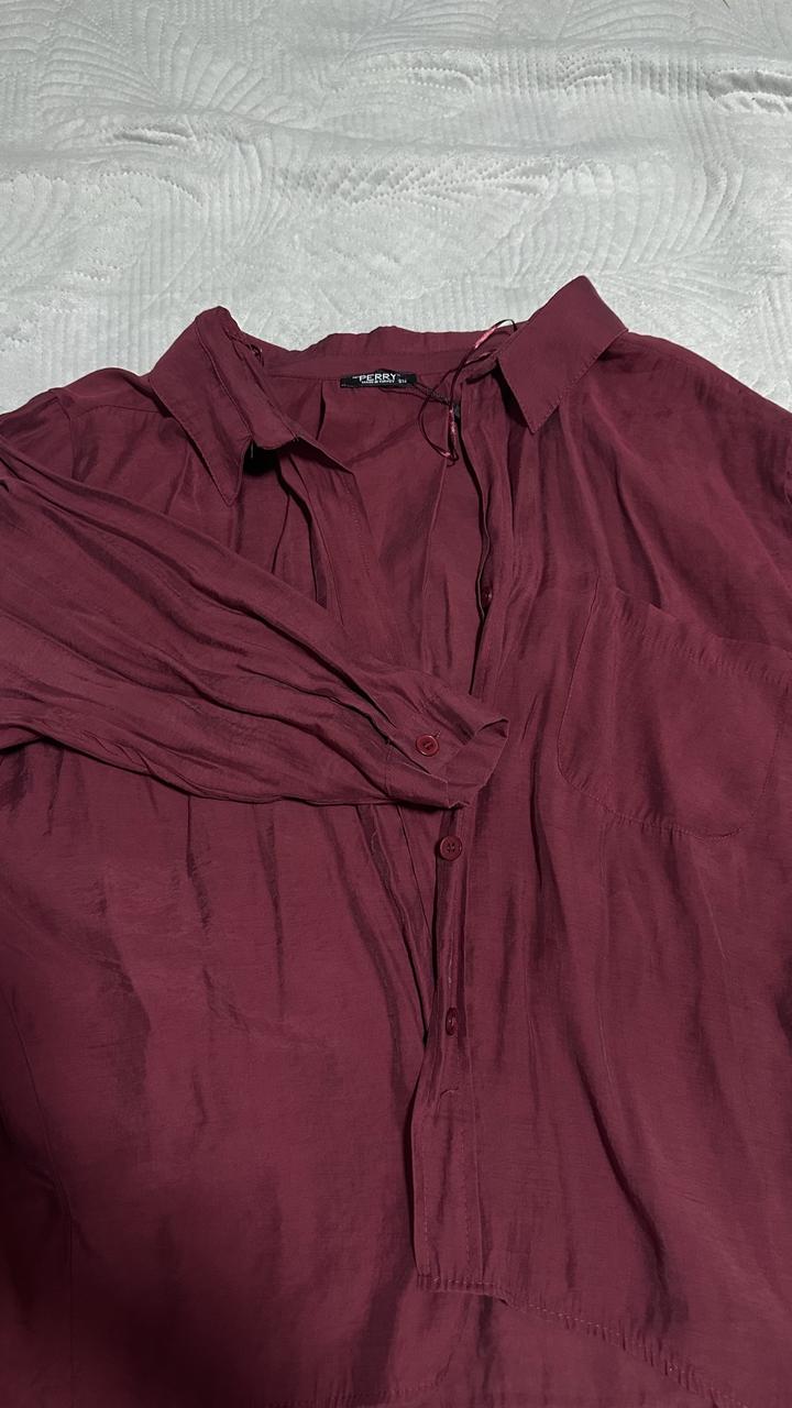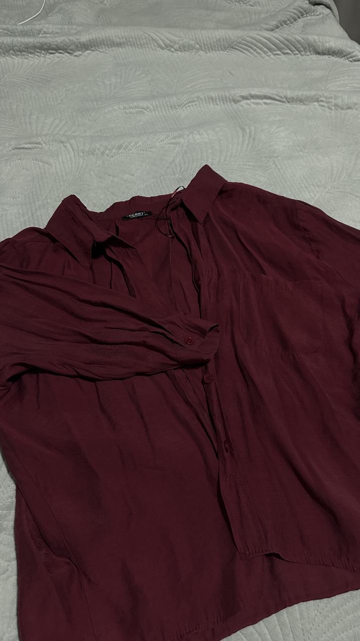 Летняя оверсайз рубашка из вискозы в цвете бургунди. Артикул: 375647