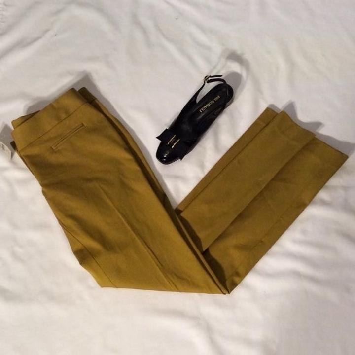 Размер: M Состояние: отличное, без дефектов Крой: прямой, немного зауженный Посадка: средняя Ткань: мягкая, не тянется Цвет яркий горчичный, освежает образ, подойдёт как для офиса, так и для повседневной носки Артикул: 375779