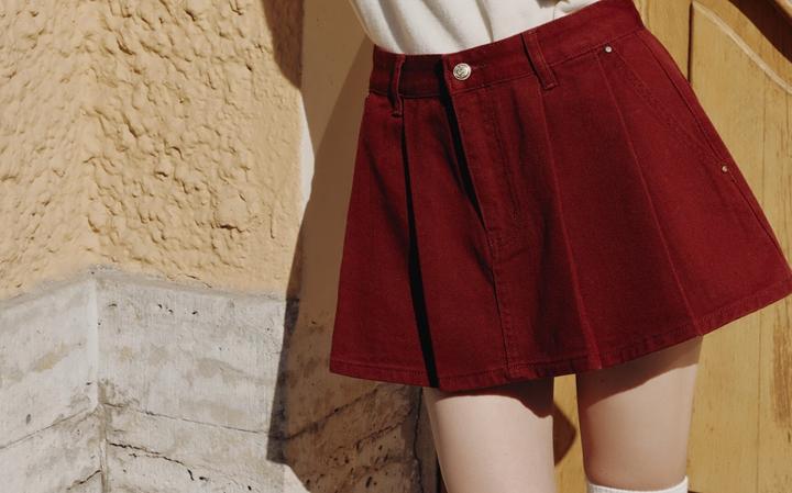 Трендовая юбка мини на средней посадке с прорезными карманами и крупными складками по бокам, выполненная из плотного денима. - длина мини - средняя посадка - размер S - отрезной пояс - прорезные боковые карманы - складки - застежка на молнию спереди - цвет бургунди - надевала всего 1 раз - размер не подошел Артикул: 376436