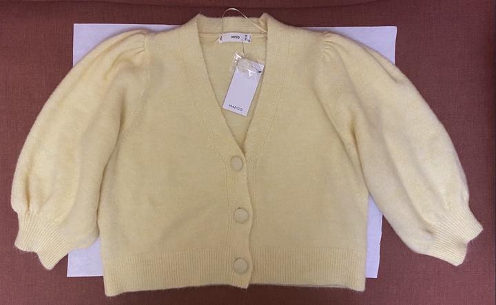 Укороченный кардиган Mango, прошлая коллекция, пушистый похож на мохеровый, теплый, не колючий, мягкий. Цвет желтый, ближе к лимонному. Размер M(44-46), сидит просторнее, чем на девушке на фото, но длина такая же. Сезонность - ранняя весна, осень, зима. Состав: акрил , полиэстер. Страна производства: Турция. Новый с бирками. Артикул: 376444