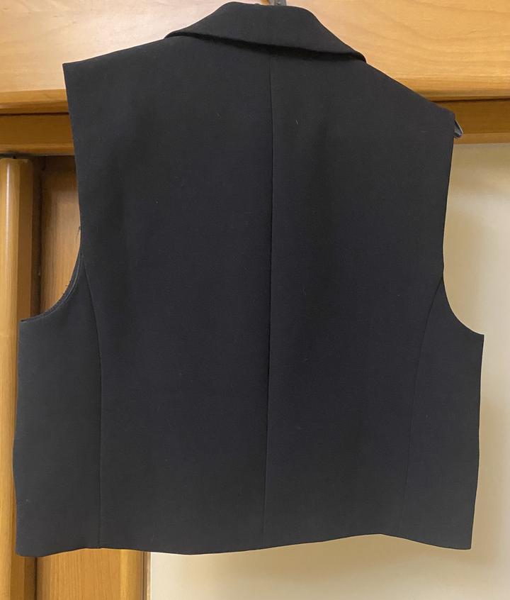 Черная жилетка Zara прямого кроя с акцентными пуговицами. Размер S (42-44). Состояние: новое, с этикетками. Состав смешанный: полиэстер/вискоза. Артикул: 376446