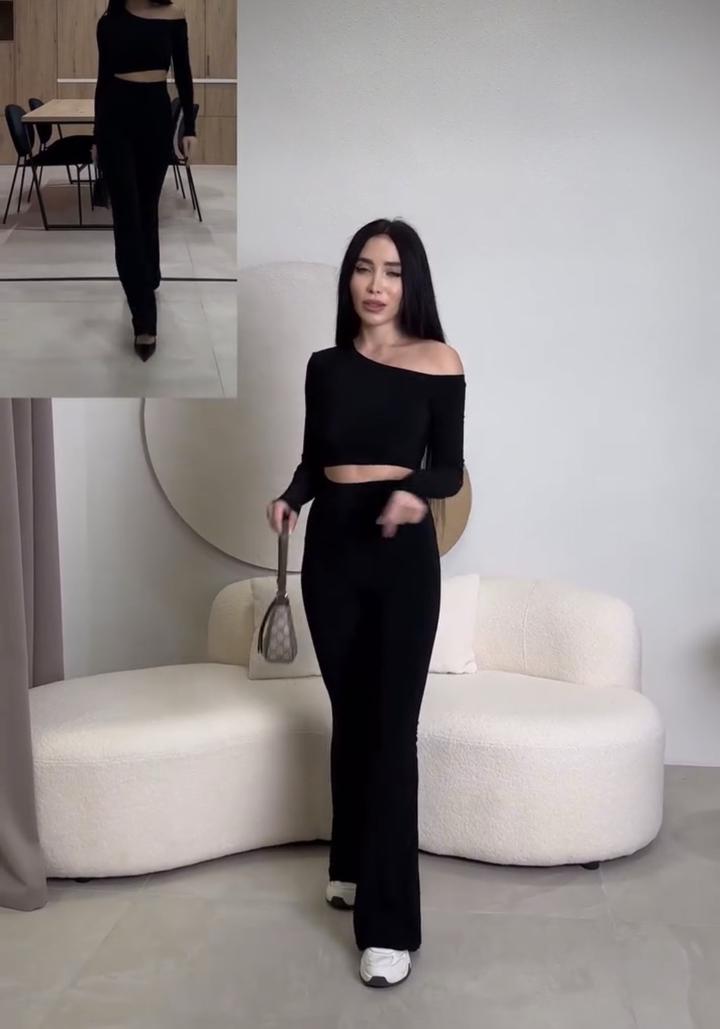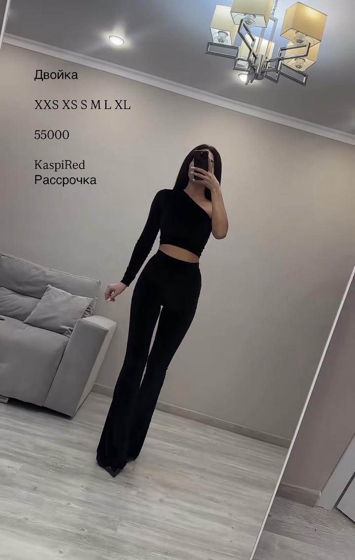 Двойка с клешами , на высокой посадке , размер S . Можно с каблуками на выход и с кроссовками на повседневку . Ткань тянется . Верх не носила , брюки одела один раз . Разгружаю гардероб Артикул: 377303
