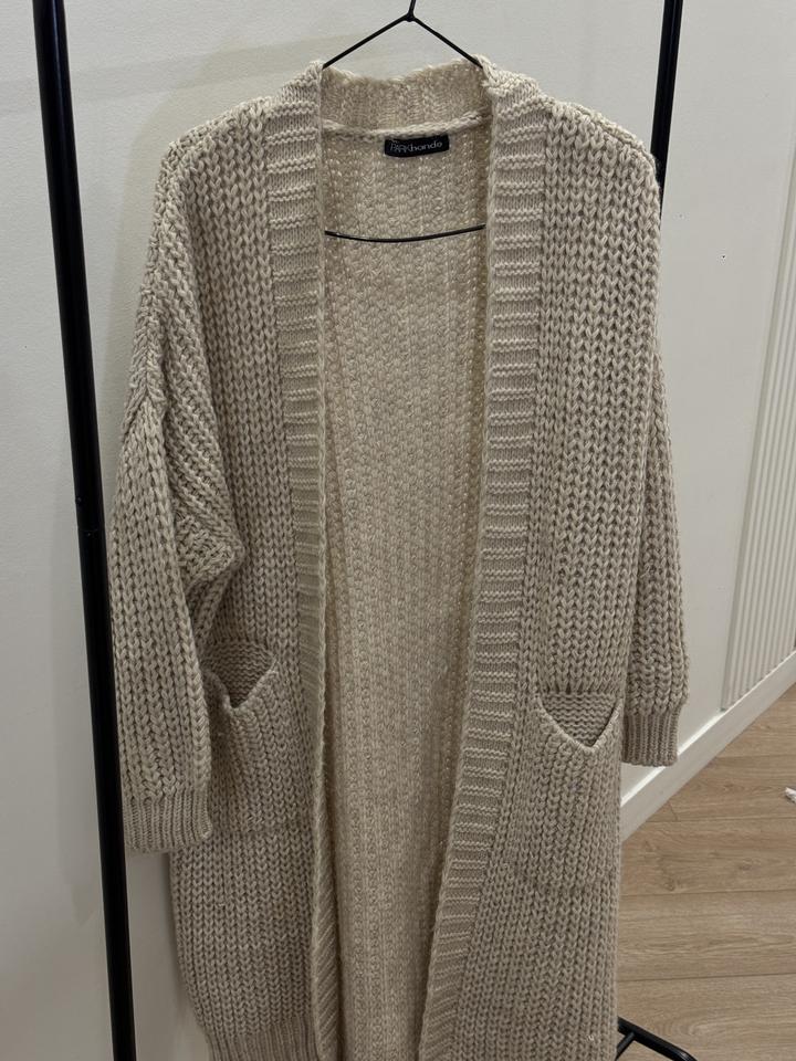 Удлинённый вязаный кардиган 🤍 Уютный и стильный вариант на холодное время года. ✨ Описание: • Размер S–M • Очень тёплый, плотная вязка • Нежный бежевый оттенок • Удлинённая модель — красиво смотрится и согревает • Два удобных кармана • Отличное состояние Идеален для повседневных образов — с джинсами, платьями и базовыми луками ✨ Артикул: 377677