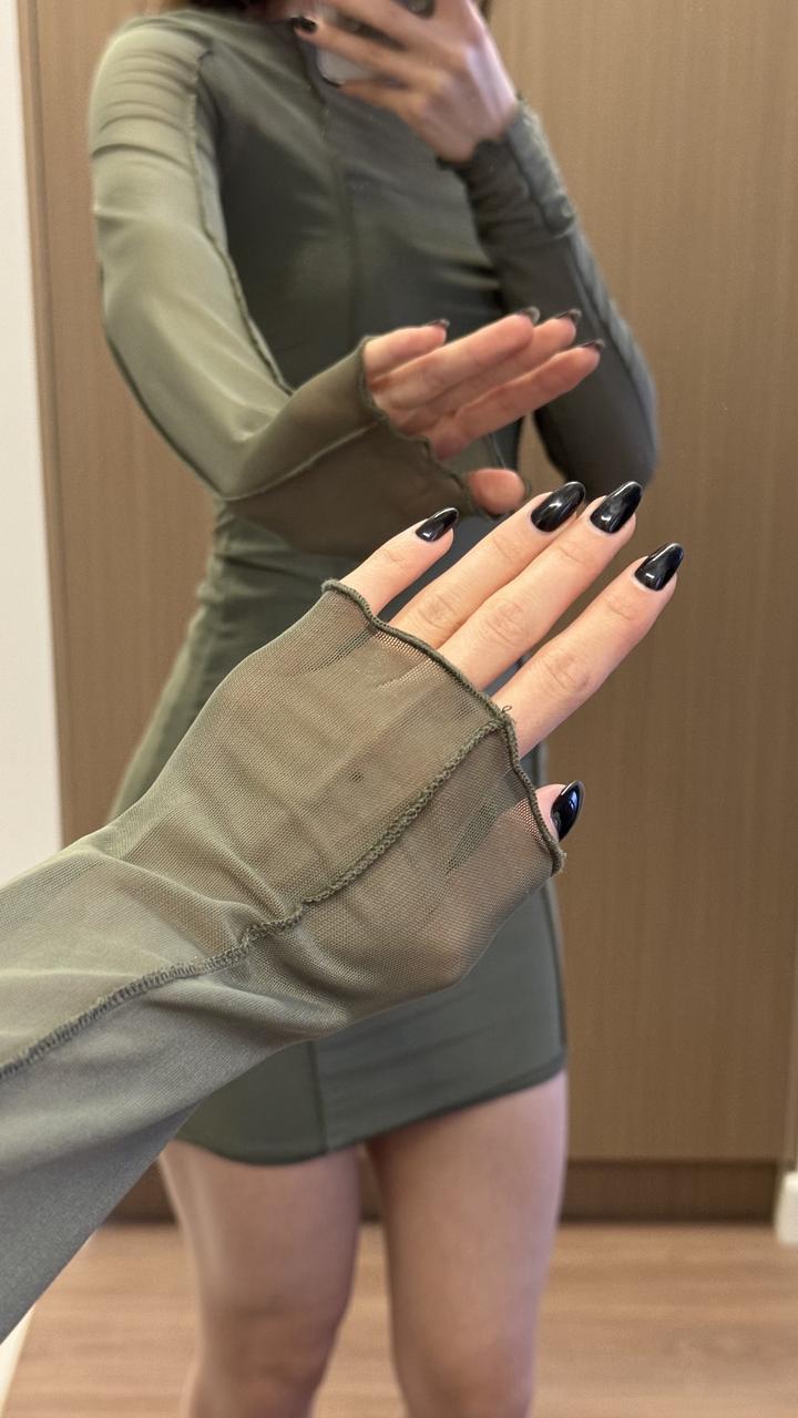оливковое платье в сетку, имеется второй защитный слой, сидит по фигуре, так как перешивала под себя состояние отличное, длина мини Артикул: 378270