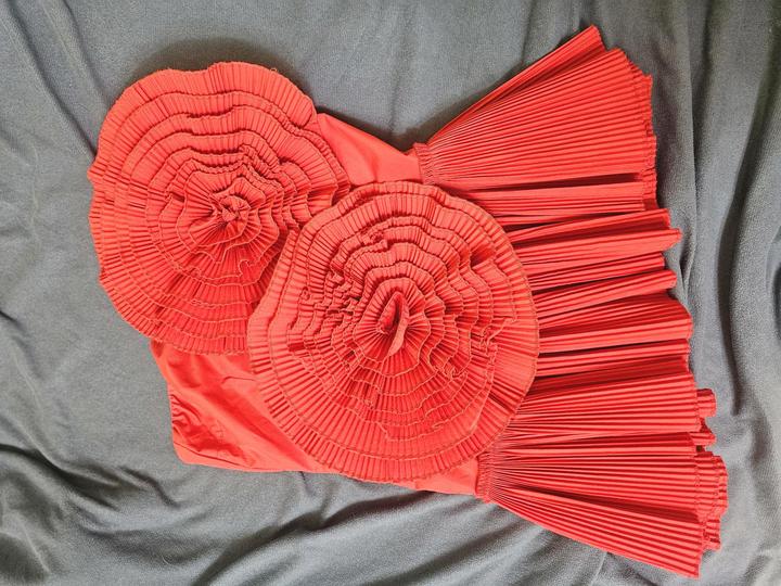 Выгодное комбо ❤️ Эффектный красный топ с объёмными цветами (покупка за 25 000, отлично тянется) и красное платье с выразительным вырезом . Платье новое, не надевалось. Во время транспортировки на спинке образовались едва заметные зацепки от страз, которые не влияют на общее впечатление образа. Комплект подбирала как единый ансамбль: платье — как база, топ — как акцент. Вместе выглядит очень нарядно, элегантно и дорого ✨ Размер на 42-44 Артикул: 379328