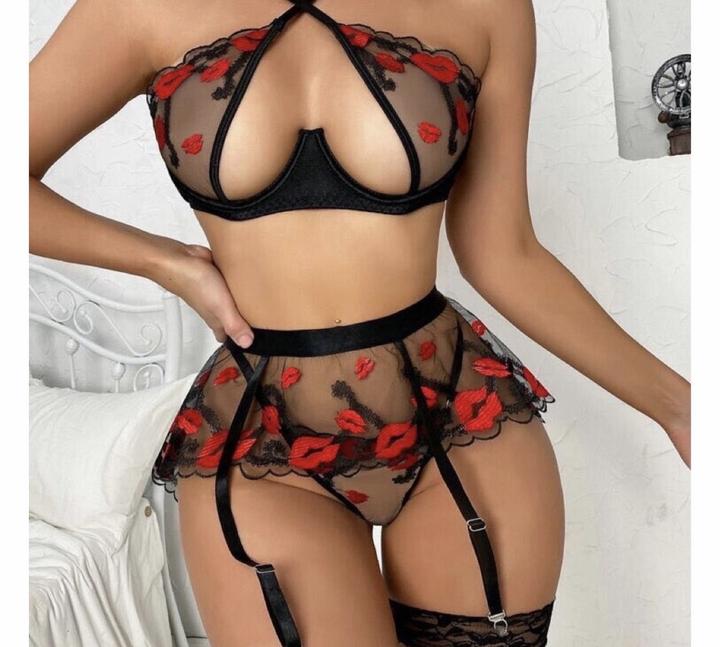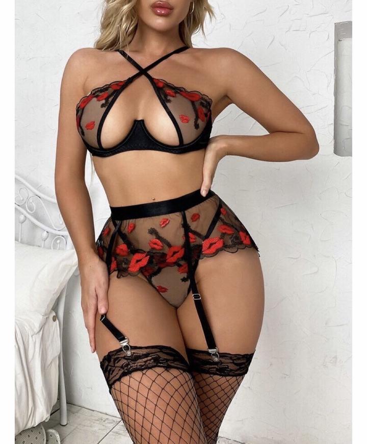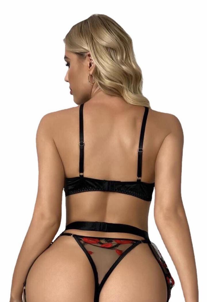 Эффектный комплект с цветочной вышивкой и изящными деталями. Сексуальный, но элегантный — подчёркивает фигуру и красиво садится по телу. Идеален для особых случаев или фотосессий. В комплекте: • бюстгальтер • трусики • пояс для чулок ✨ Детали: — полупрозрачная сетка с вышивкой — регулируемые бретели — хорошая посадка — смотрится дорого и эффектно 📏 Размер: ориентировочно S–M-L 📦 Состояние: отличное, без дефектов 🎨 Цвет: чёрный с красной вышивкой Имеется интересный подарок 🥰 Артикул: 380034