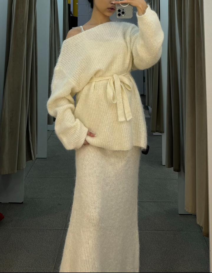 Костюм с юбкой длины макси смотрится очень женственно молочный цвет очень теплый Артикул: 380089