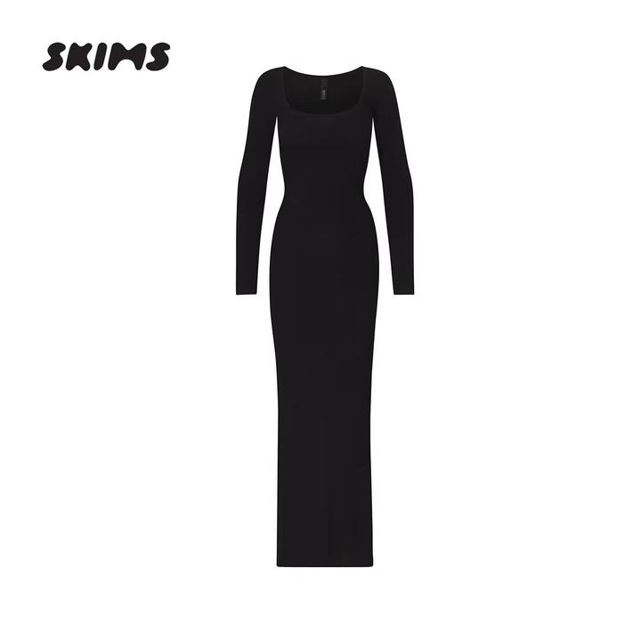 Платье Skims черное - ликвидация партии. размер S подойдет на S/М. Платье макси из трикотажа по фигуре (комфортное моделирование) - идеальный выбор для элегантного образа. Классический фасон с длинными рукавами и длиной делают его универсальным вариантом как для вечерних мероприятий, так и для повседневной носки. Мягкая ткань, чуть расклешенный силуэт, небольшой утягивающий эффект правильно подчеркнет достоинства фигуры. Модель и особенности ткани вдохновлены известным брендом Skims платье Артикул: 381394