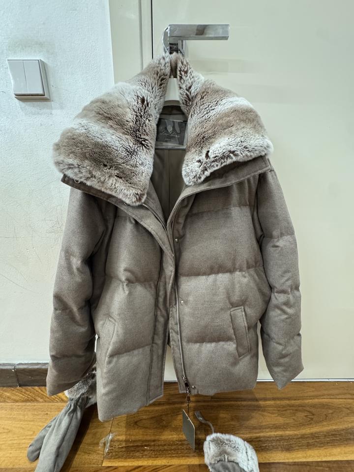 Продам зимнюю куртку под Лоро Пьяно из кашемира, с мехововыми вставками. Воротник сьемный, в комплекте варежки. Новая с биркой, размер не подошел Артикул: 381825