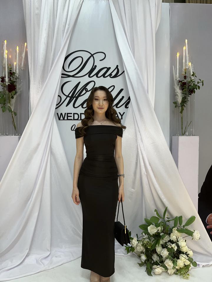 Черное длинное платье, качество хорошее, надела только один раз на свадьбу. Длинное платье с открытыми плечами, сзади разрез до колено. Артикул: 382155