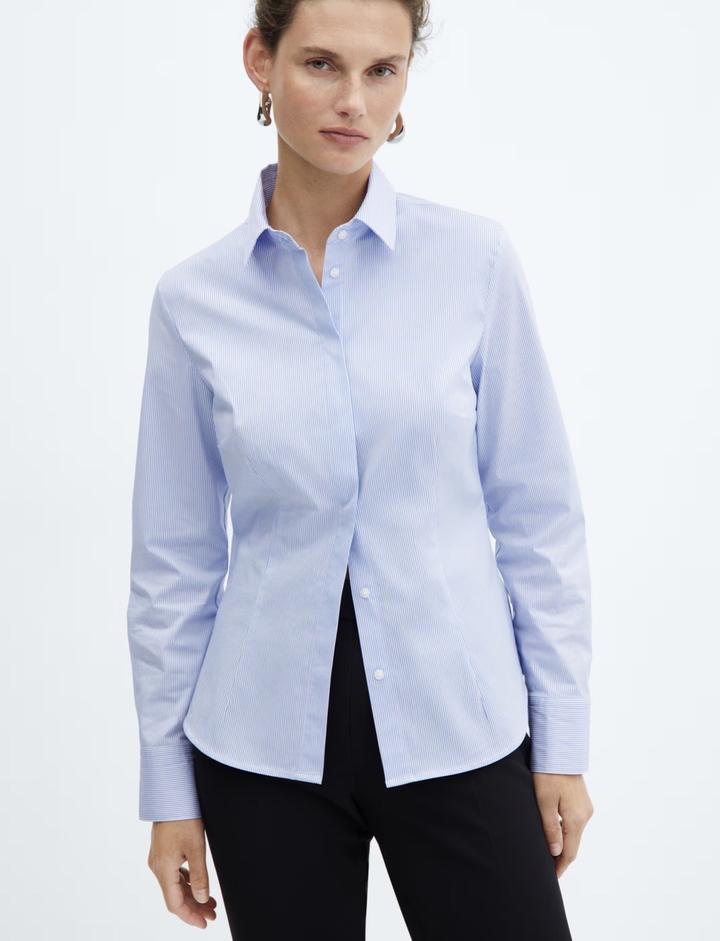 Рубашка Mango, голубая в полоску. Размер — M. Покупалась давно, надевалась всего один раз, не подошёл размер. Состояние хорошее. По запросу могу предоставить дополнительные фотографии и информацию. Артикул: 382565