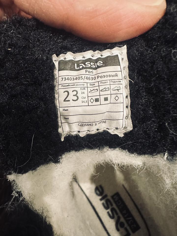 Детские зимние ботинки Lassie — новые Продам новые зимние ботинки Lassie, оригинал. Ребёнок не носил, состояние идеальное. Характеристики: • Размер: 23 (стелька ~ 14,5 см) • Утеплитель: 3M Thinsulate (200 г) • Материал: влагостойкий, тёплый • Подошва: нескользящая • Застёжка: липучки Артикул: 382589