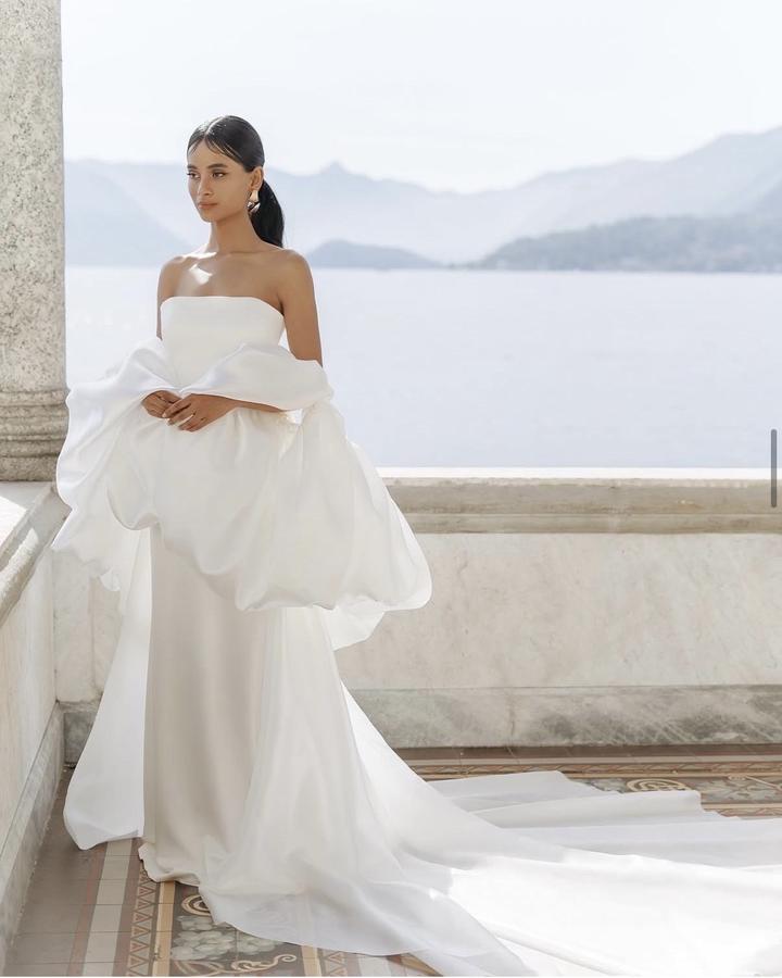 Элегантное минималистичное свадебное платье с балеро, накидкой и съемным шлейфом! Изысканное свадебное платье А-силуэта с корсетным лифом. Платье выполнено из мягкого, благородного стрейч-сатина, красиво подчёркивает фигуру и выглядит очень утончённо. Образ дополнен объёмной накидкой из органзы — она создаёт эффект лёгкого облака и делает платье особенно нежным и запоминающимся. Платье после проф чистки. Размер 38, ушивали на 36. Длина хорошая, на рост 167 + каблуки 8 см, было даже длинным Артикул: 382616