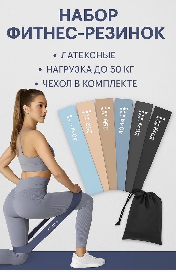 Набор фитнес резинок 6 штук+ чехол для хранения. Новые Артикул: 383099