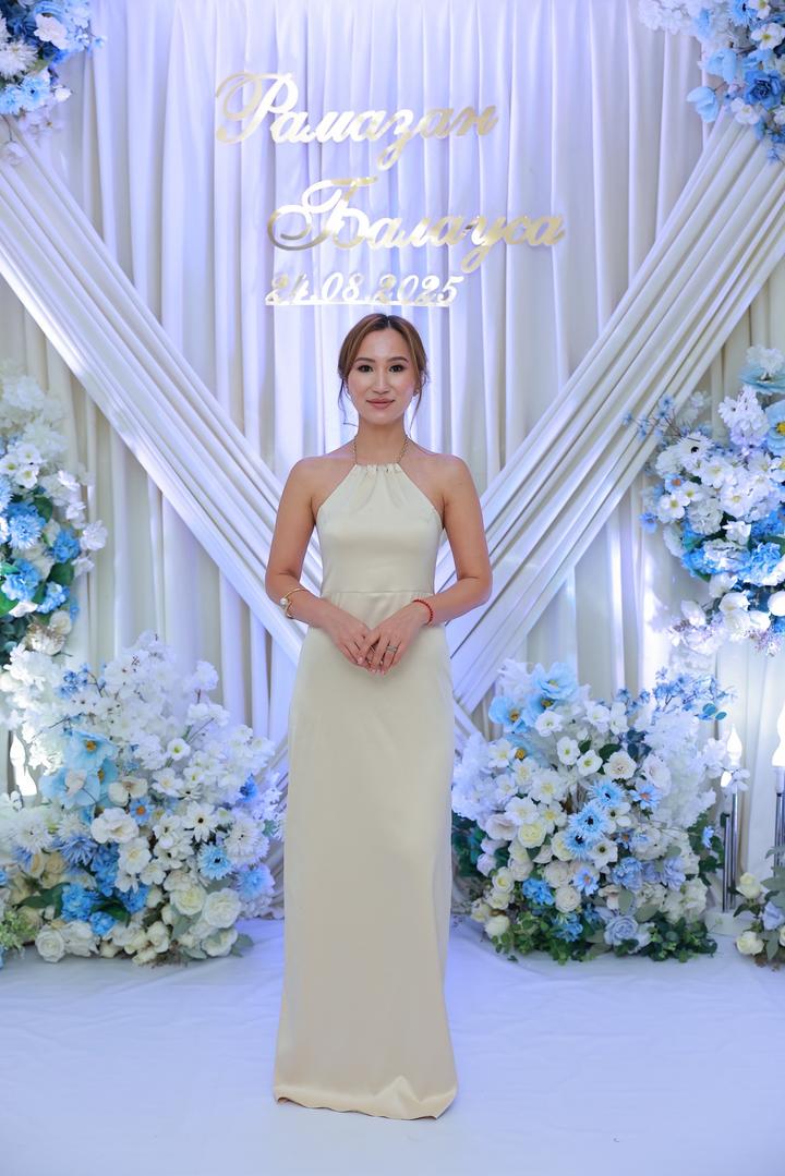 Вечернее платье в пол сшитое на заказ. Размер ХС-С. Идеально для тоя, выпускного и других больших мероприятии. Свет бежевый, красивый и ткань чуть сверкает. Не просвечивает, специально такой материал искала. Артикул: 383796