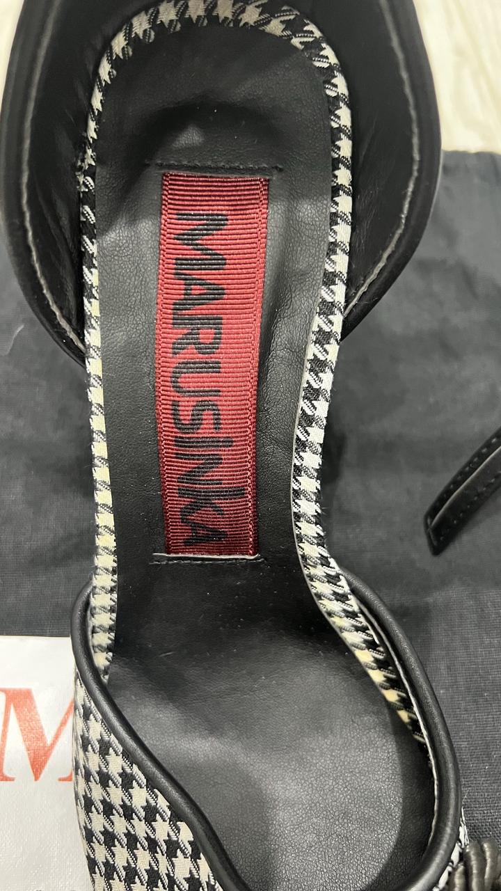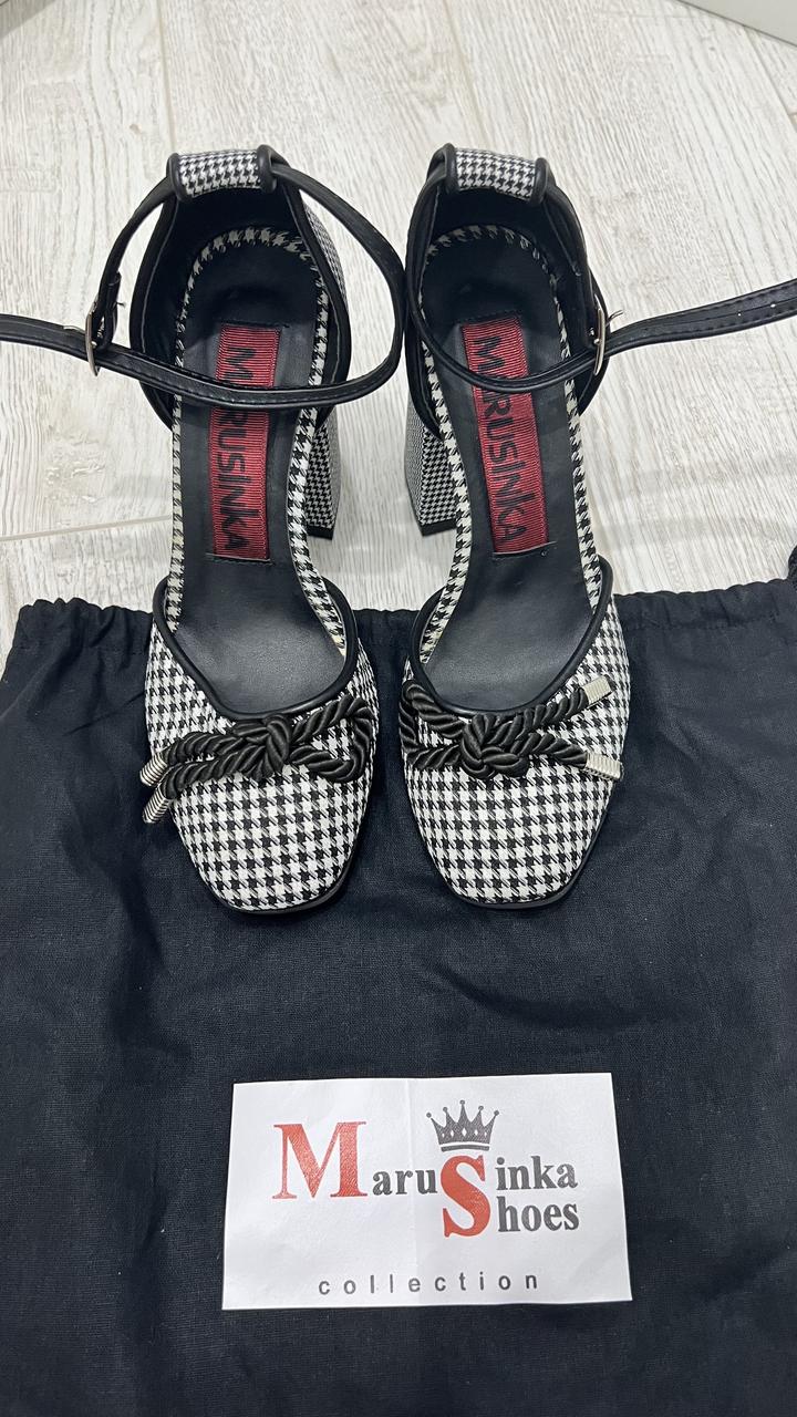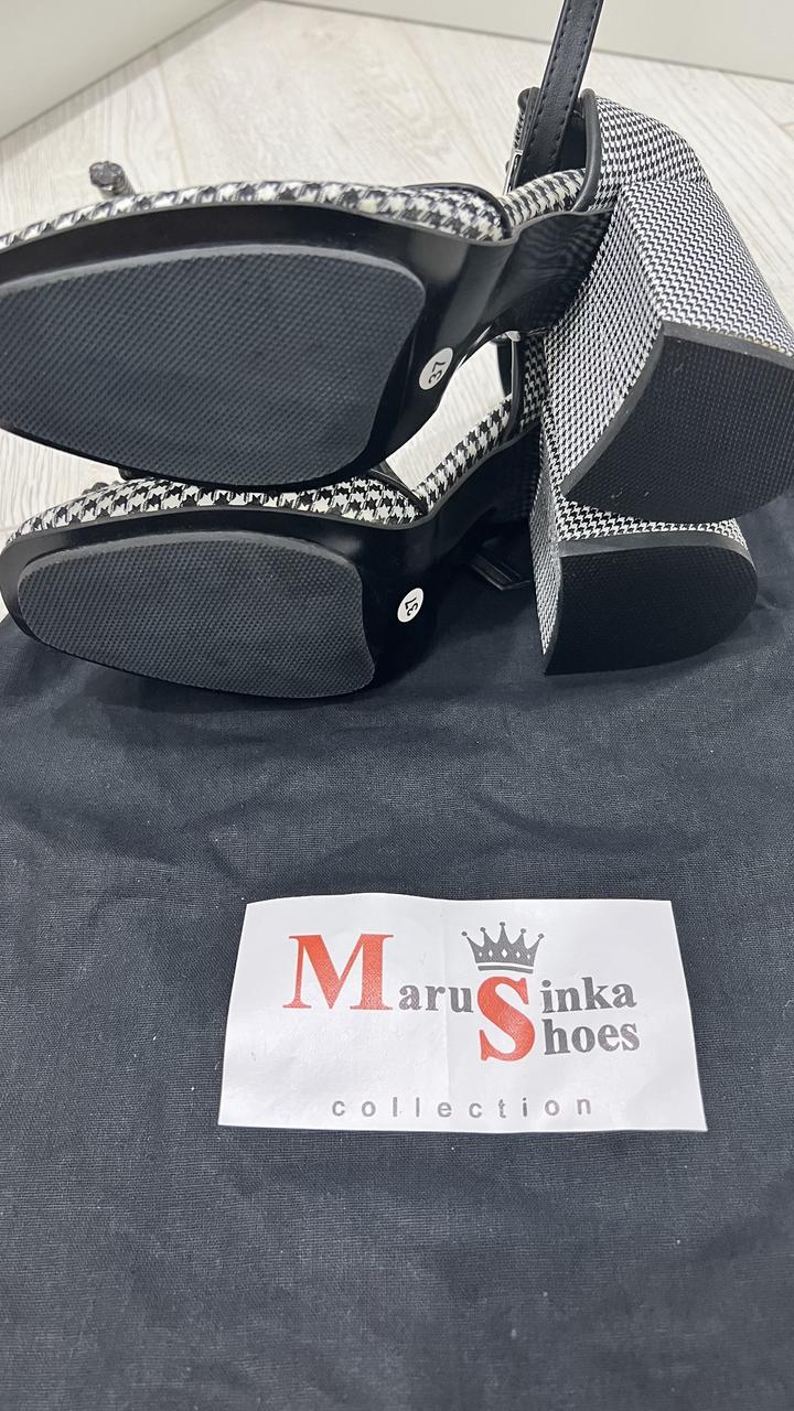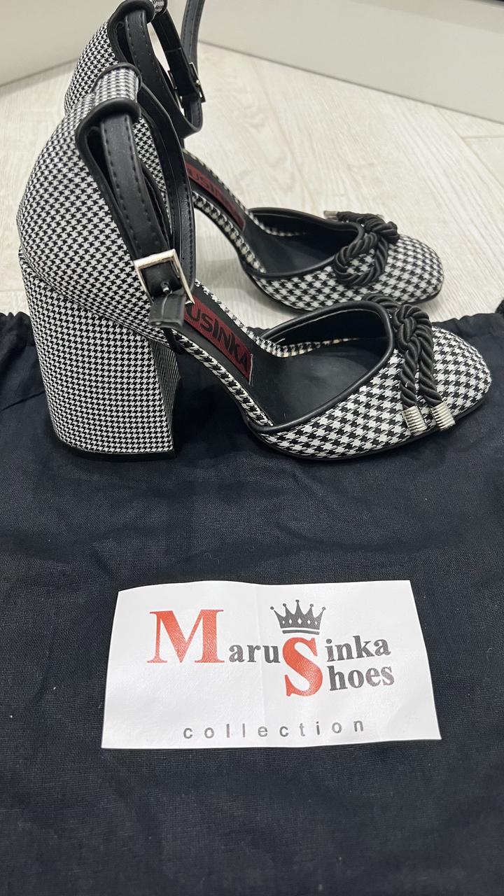 Продаются туфли грузинского дизайнера Marusinka. Материал гусиная лапка, с кожаным ремешком, устойчивый толстый каблук, новые не ношеные. Покупали в Грузии, размер 38. Размер в размер. Цена 30000тенге Артикул: 384044