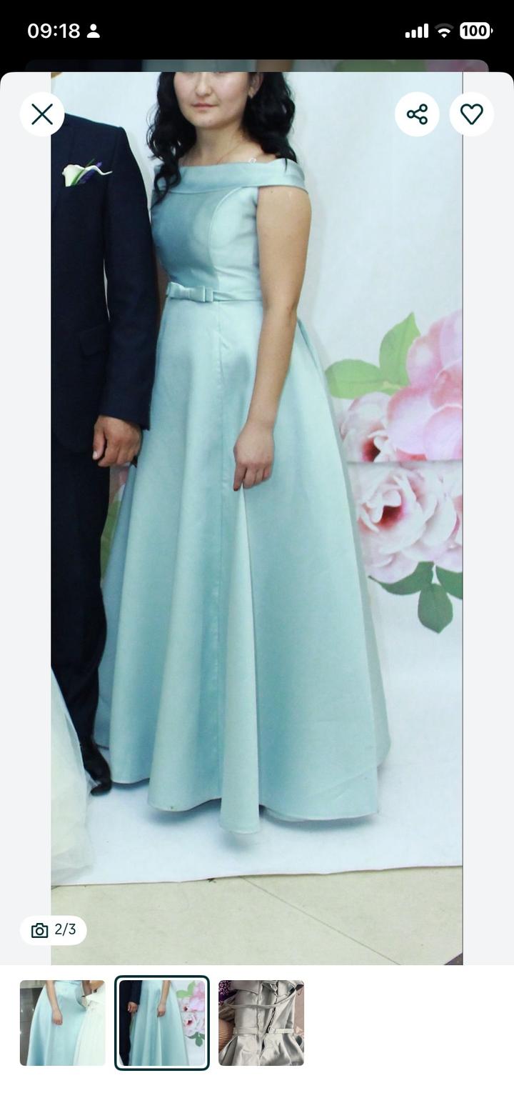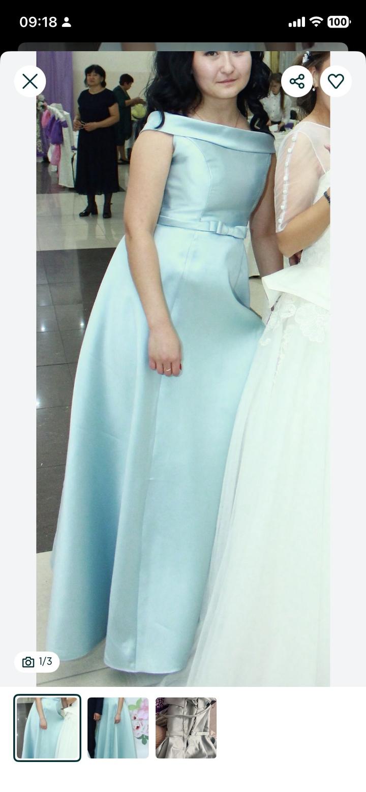 Платье размер подойдёт на 42-44 Сзади на завязке как на свадеб платьях Цвет как то меняется на солнце и в помещении Платье в отличном состоянии Она очень красивая в живую смотрится и меняет цвет переливается Одели всего два раза когда были дружной невесты Артикул: 384343