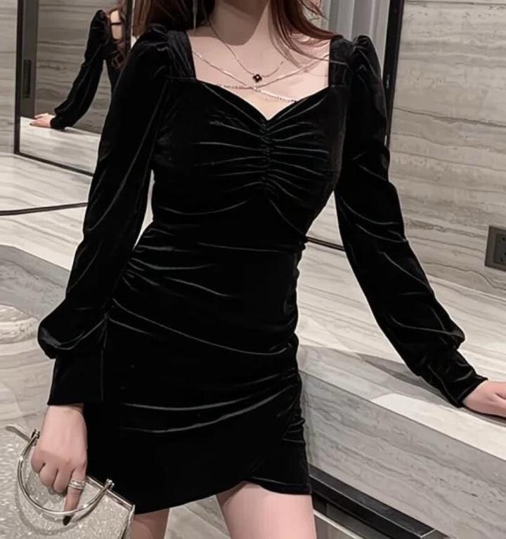 Черное платье с атласвыми рукавами подстраивается под фигуру и делает её красивее😍 Артикул: 384391