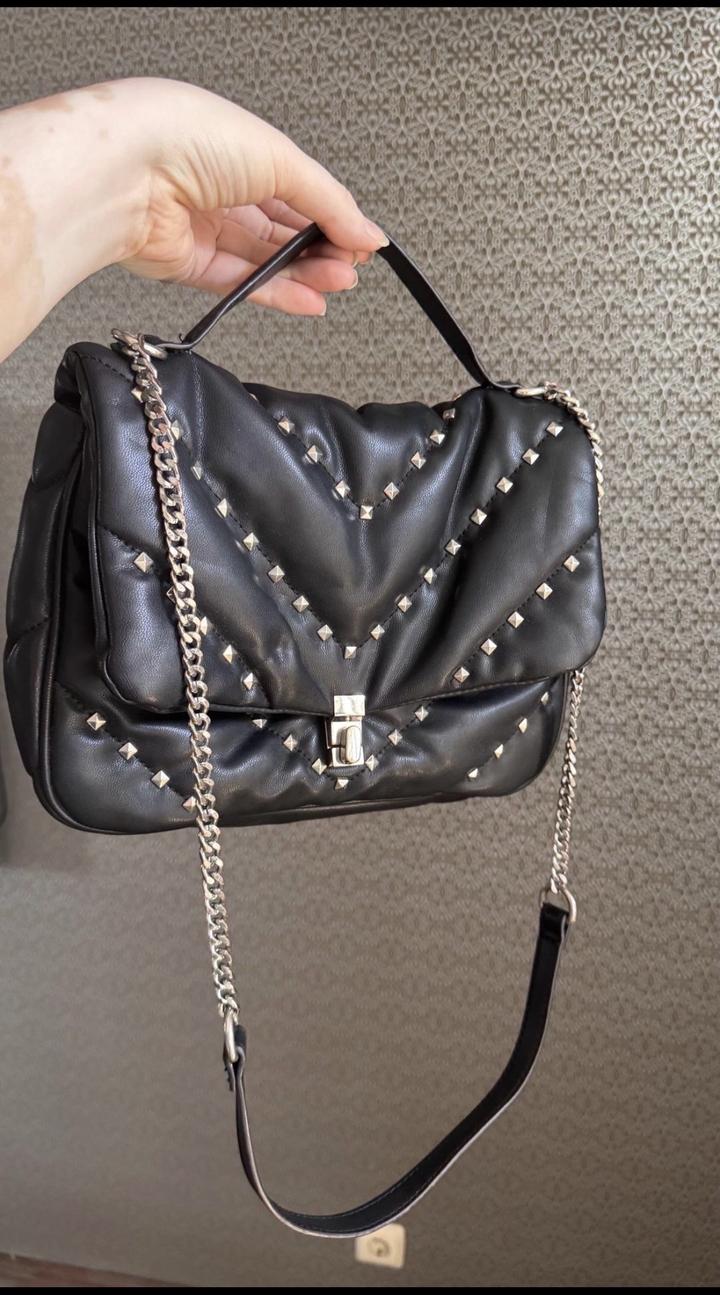 Смотрите все фото Сумочка из мягкой эко кожи с ручкой , ремень вшитый (можно внутрь убрать будет как вид клатча) Смотрите все фото , все рабочее и в целости , на последнем фото показываю как немного стерлось покрытие металла от времени, но во время носки сильно не видно Артикул: 384570