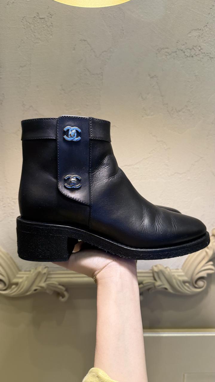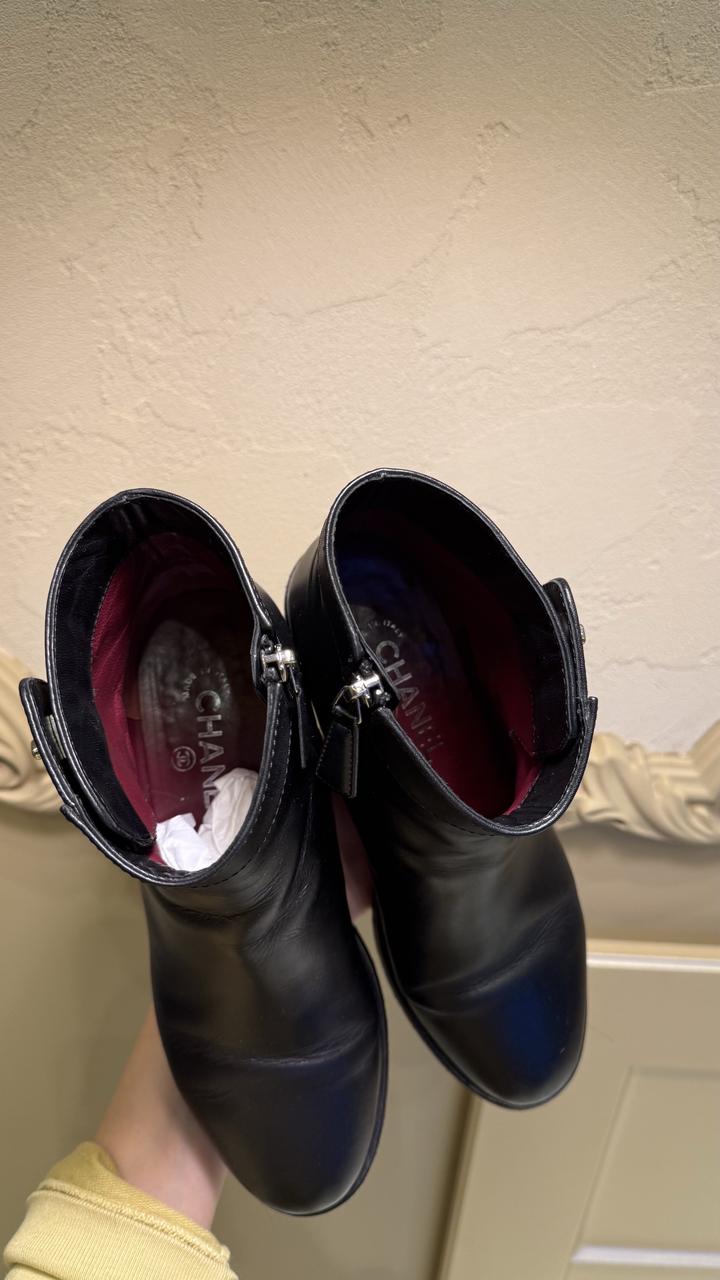 Сапоги Chanel Строго оригинальнал. Плотная кожа, каучуковая подошва (удобно амортизирует при ходьбе) В хорошем состоянии Покупались около 900€ Маркировка 38С (на 25 см стелька) Артикул: 385027