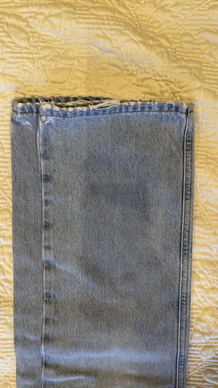 26 размер на M или на s как Овер. Хорошее состояние Красивый голубой цвет Очень высокая посадка Артикул: 385050
