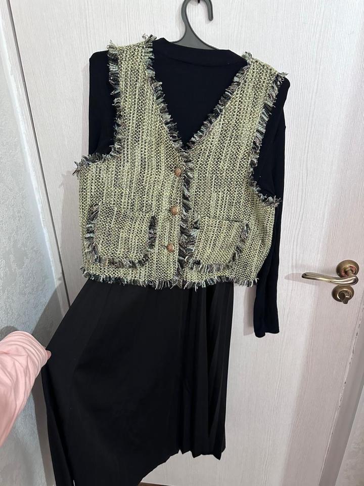 Двойка Черное платье с жилеткой Носила 1 раз, состояние идеальное, размер стандартный Артикул: 385642