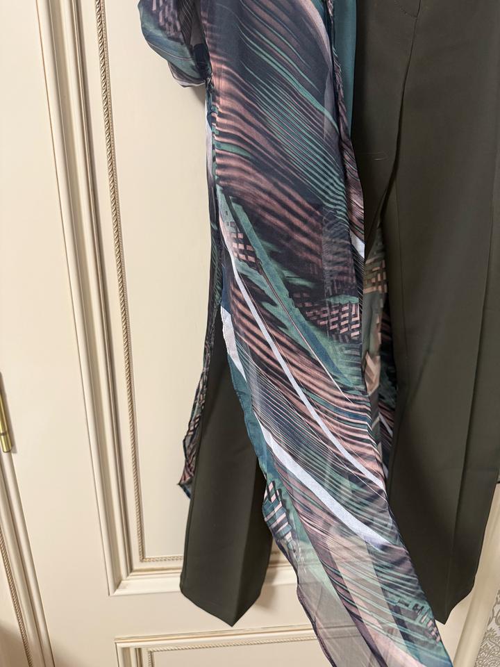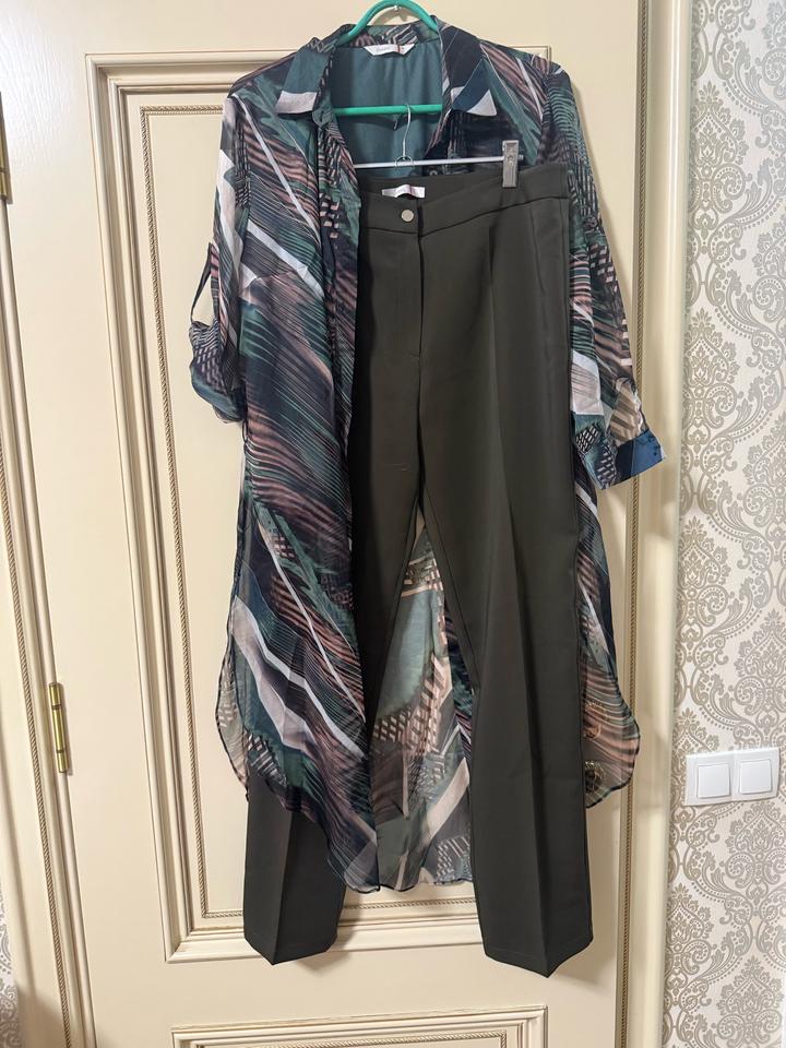 Лёгкая удлинённая накидка-кардиган с модным принтом + классические брюки. Очень красиво смотрится в движении, визуально стройнит фигуру. Подходит как для повседневного выхода, так и для мероприятий. Преимущества: ✔ современный дизайн ✔ лёгкий, приятный к телу материал ✔ накидка не сковывает движения ✔ брюки с хорошей посадкой Идеальный вариант для весны, лета и тёплой осени 🌿 Состояние отличное , накидку носила только 1раз, а брюки новые Артикул: 386443