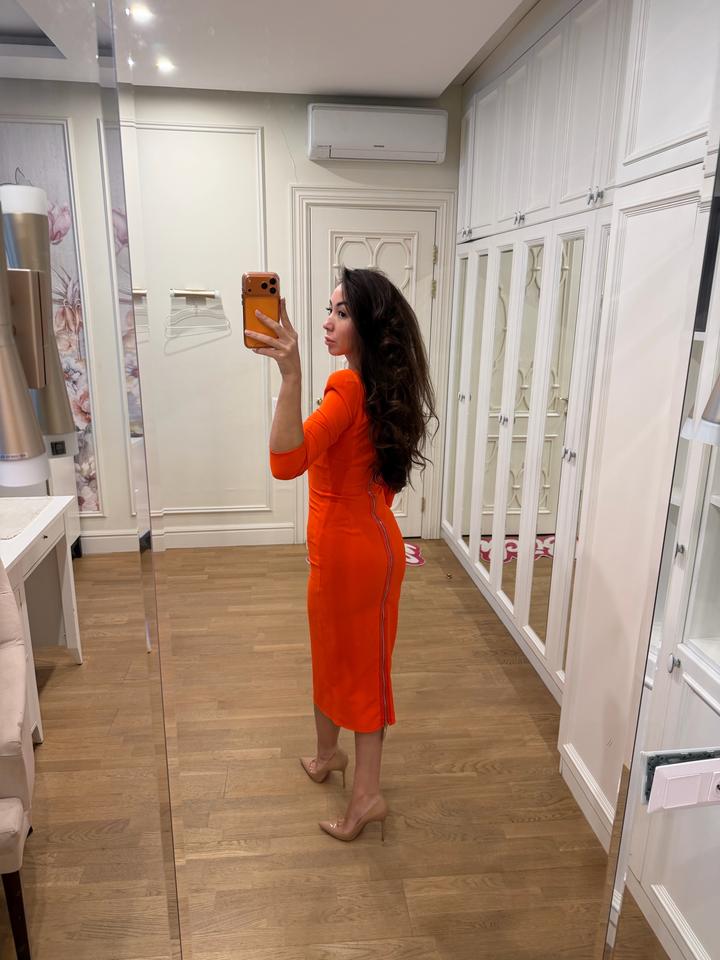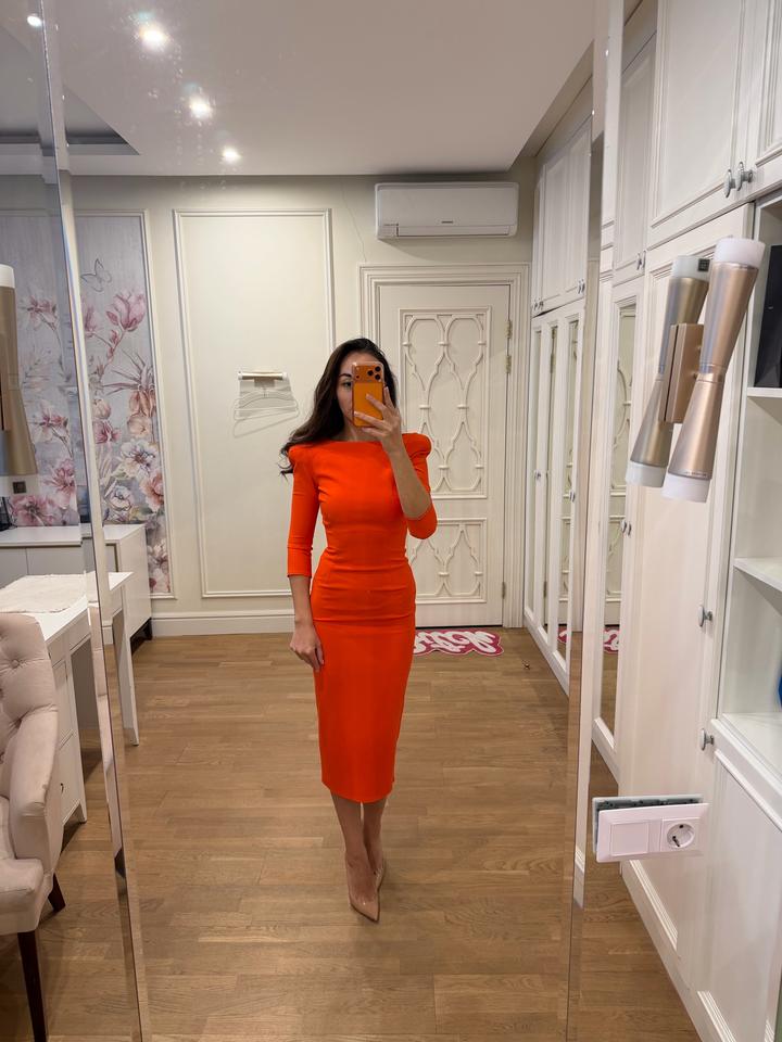 красиво сидит по фигуре, подчеркивая фигуру. покупали в Есентае за 230,000 тг, надевалось один раз. Артикул: 386499