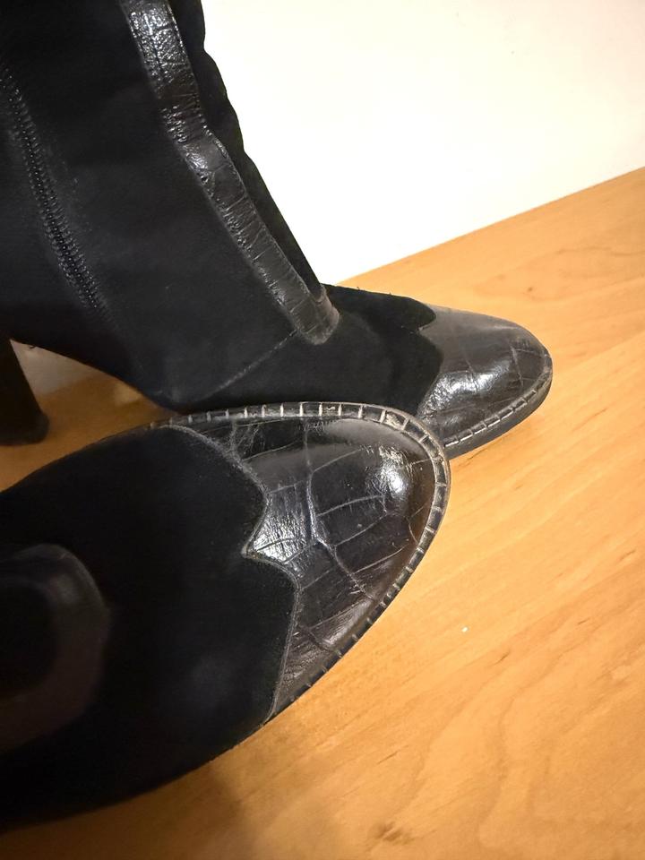 Итальянские сапоги, не знаю что за бренд такой, но сапоги эти добротные. Замша с кожаными вставками. Внутри натуральный мех. Удобная колодка, невероятно теплые, стоит профилактика на подошве. Есть следы носки и дефекты (на носике и каблуках). Размер голенища 15 см Продается только потому, что ни у кого в семье не застегивается теперь на ноге, пыталась я и тетя 😅 Артикул: 386800