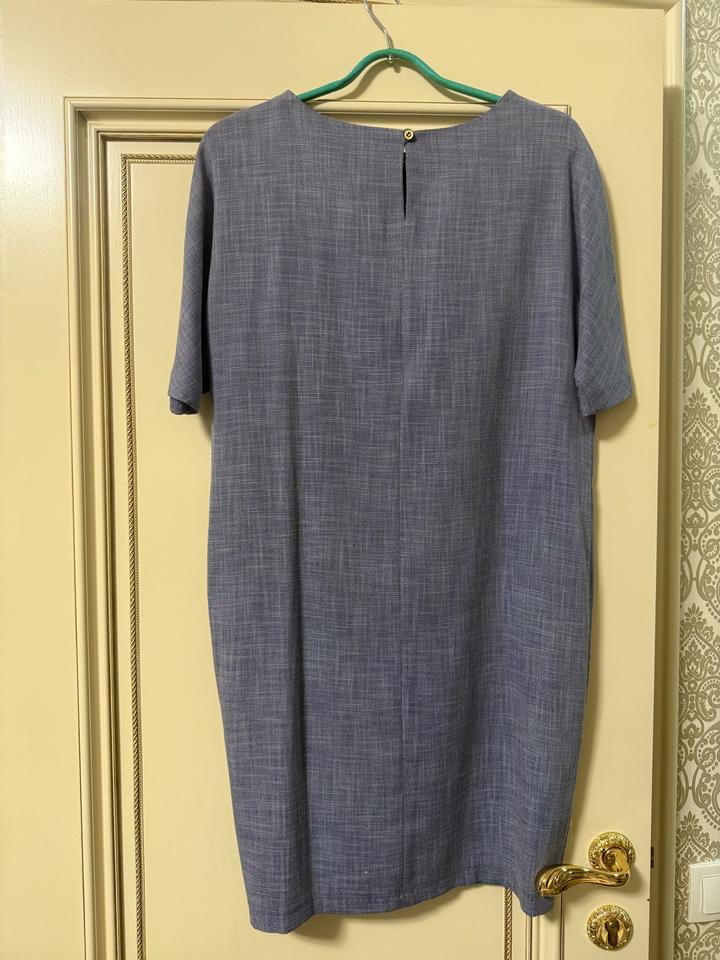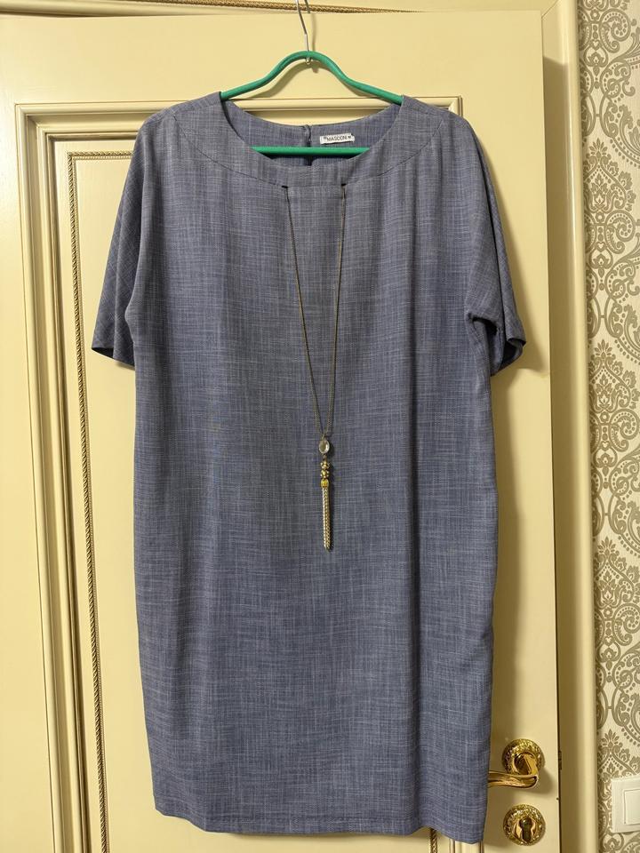 Лаконичное платье прямого кроя в красивом серо-голубом оттенке. Короткий рукав, аккуратный вырез, свободная посадка — комфортно и стильно. В комплекте длинное украшение-подвеска, которое делает образ завершённым (можно носить и без него). Состояние: б/у, в отличном состоянии, носила пару раз Материал: костюмная ткань (полиэстер с добавлением вискозы — не мнётся, держит форму) Цвет: серо-голубой / джинсовый Подойдёт для работы, повседневной носки и мероприятий. Смотрится аккуратно и дорого. Артикул: 387136