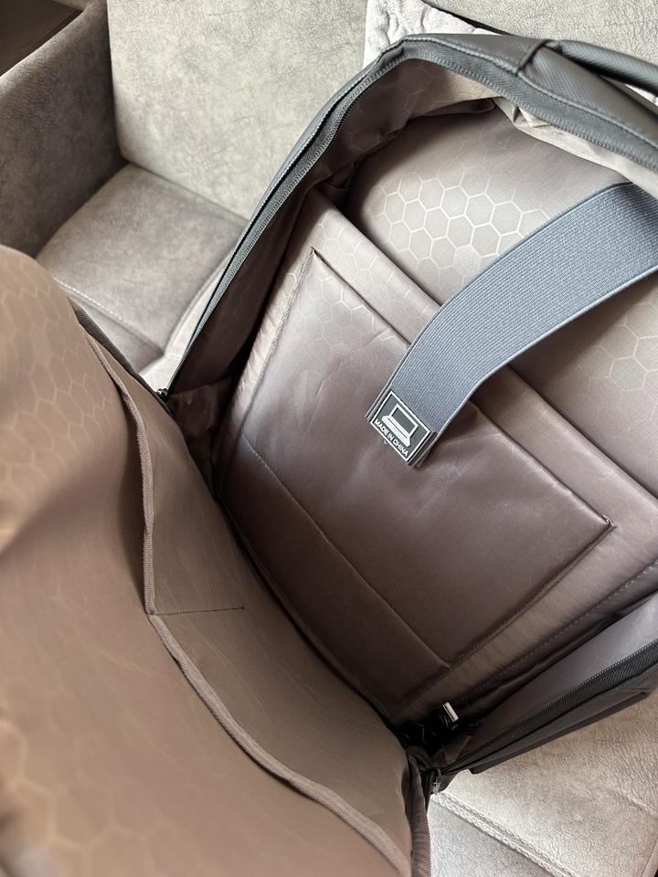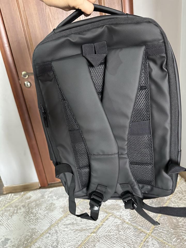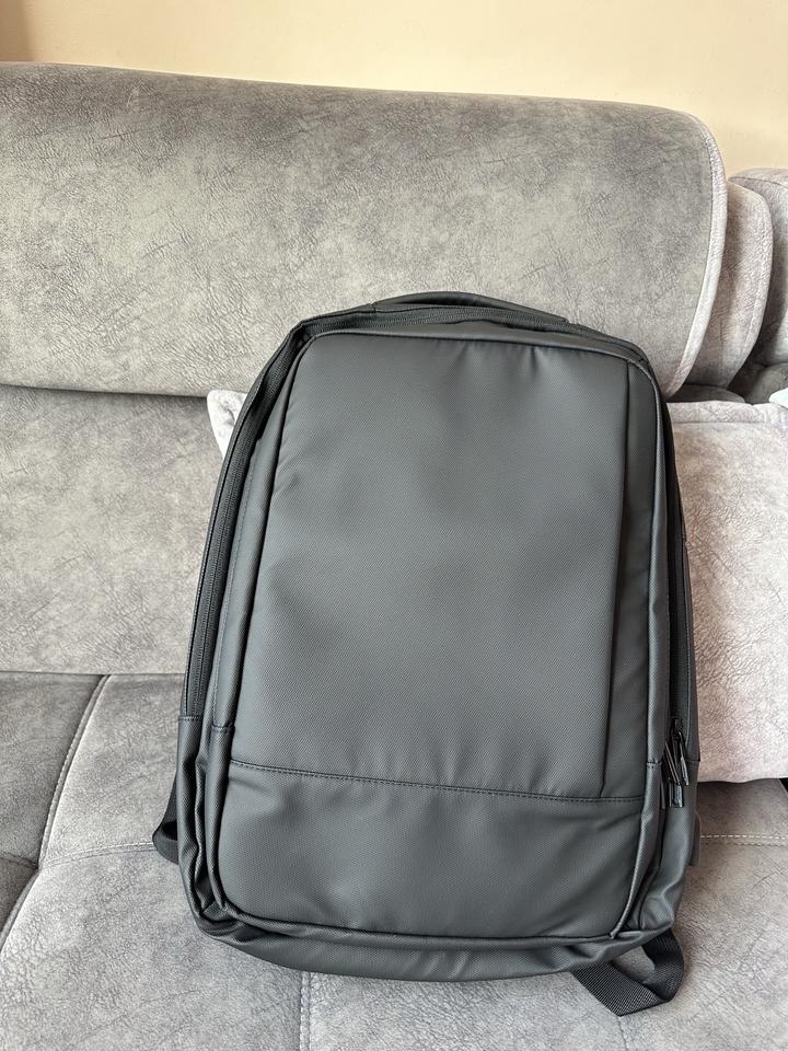 Рюкзак новый, но сразу напишу это бюджетный вариант цена соответствует качеству. Материал водонепроницаемый, можно протирать. Много разделов, кармашек. Бирки нет, но есть пыльник. Артикул: 387303