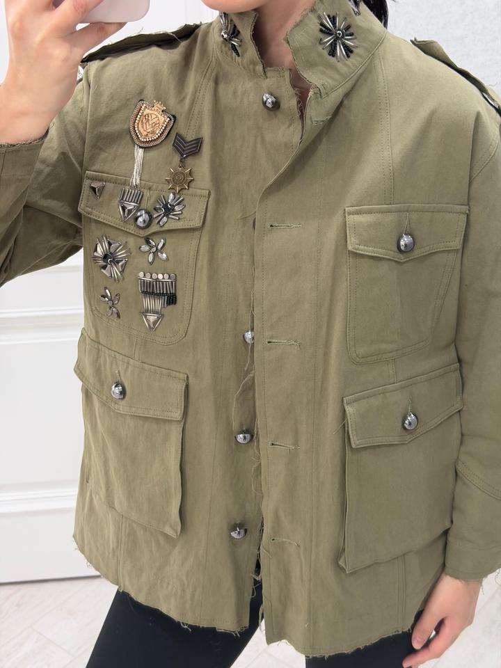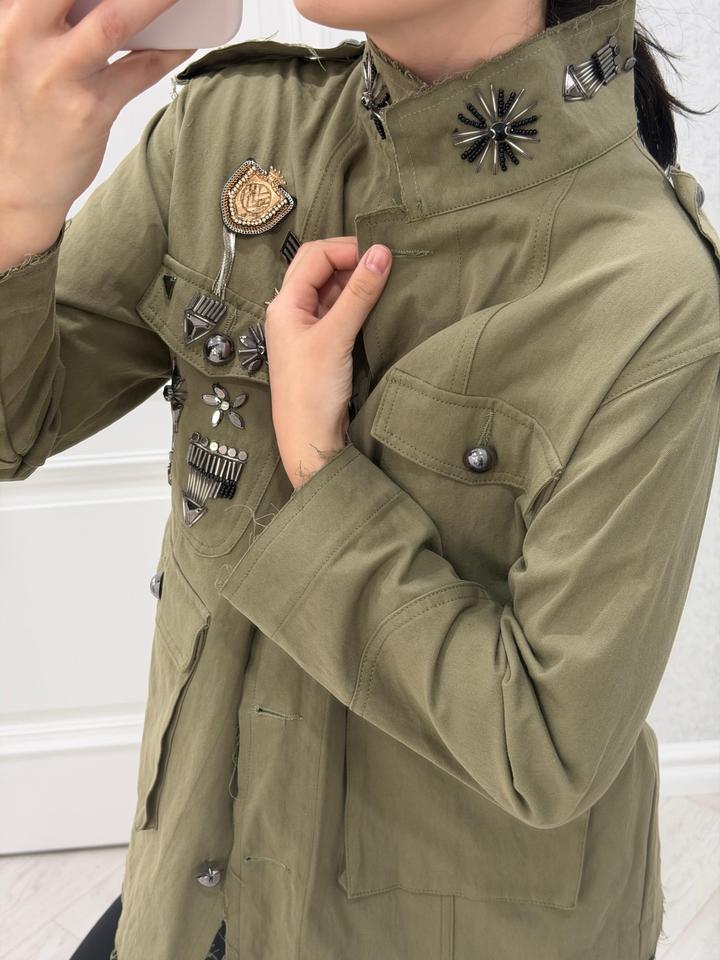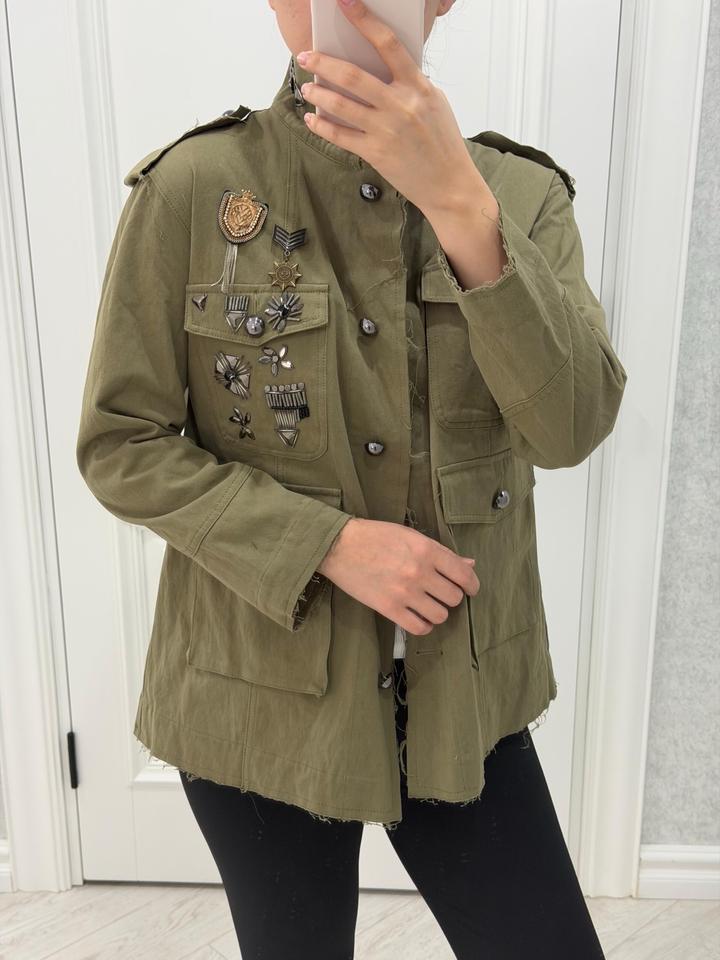 Продается куртка цвета хаки, из ткани хлопок джинса. Стойка воротник, на воротнике и на кармане в груди вшиты детали, сезон осень весна. Прямого кроя, размер подойдет до 48. Производства Корея. Новая без бирки, не ношеная. Цена 10000 тенге. Артикул: 387474