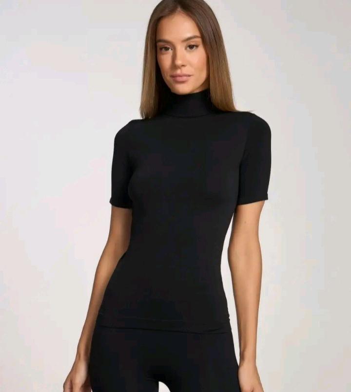 Новая но с небольшим нюансом водолазка с коротким рукавом от итальянского бренда Intimidea. Нюанс: залом (неразглаживаемая складка) впереди в районе живота - см последние 4 фото. Это не слишком заметно. Размер указан ML, но маломерит, подойдёт точно на S (42-44).Облегающая. Плотная непросвечивающаяся ткань стрейч. Артикул: 388195