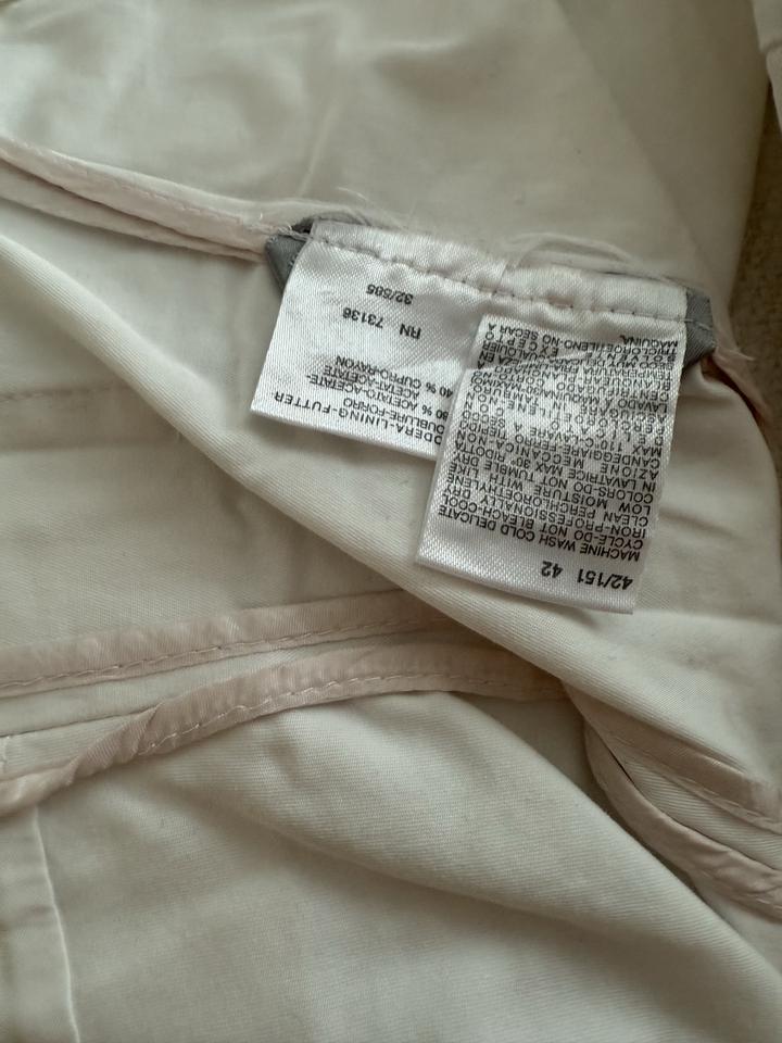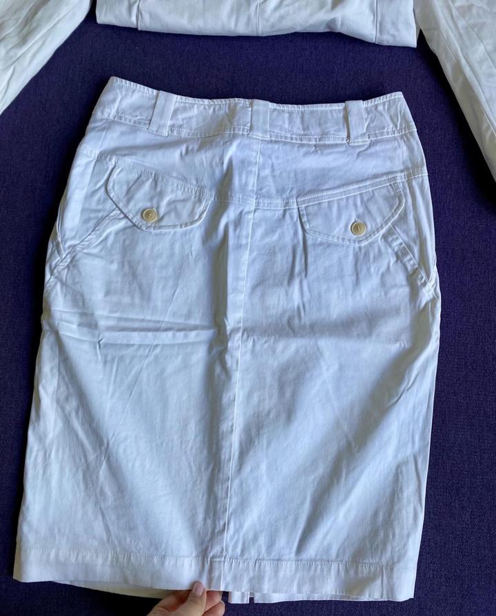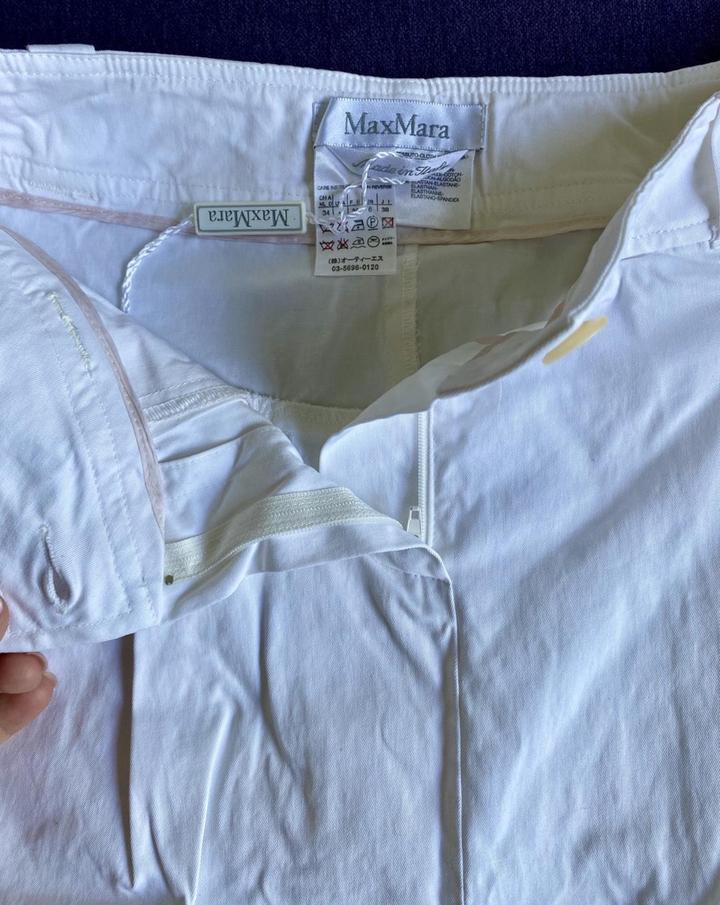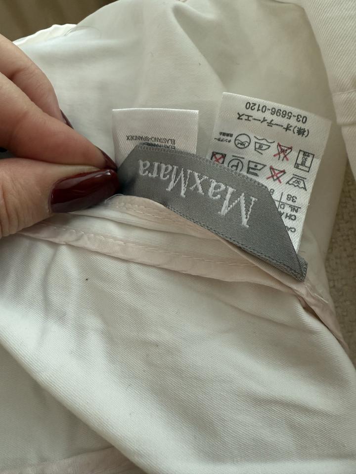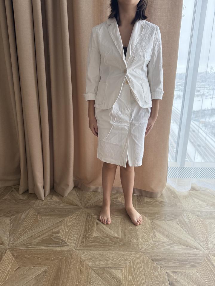 Костюм Max Mara, оригинал (XS-S) Оригинальный костюм Max Mara: пиджак + юбка. Юбка новая, с оригинальными бирками, не стиралась, не носилась ( примерка 1 раз). Пиджак надевался 1 раз до беременности, костюм долго хранился в шкафу — рекомендую освежить в химчистке. Размер по факту XS–S по факту, на мои М-L даже намека нет что влезу. Материал: хлопок 96% с эластаном. Цвет молочно-белый. Покупалось в Европе Артикул: 388289