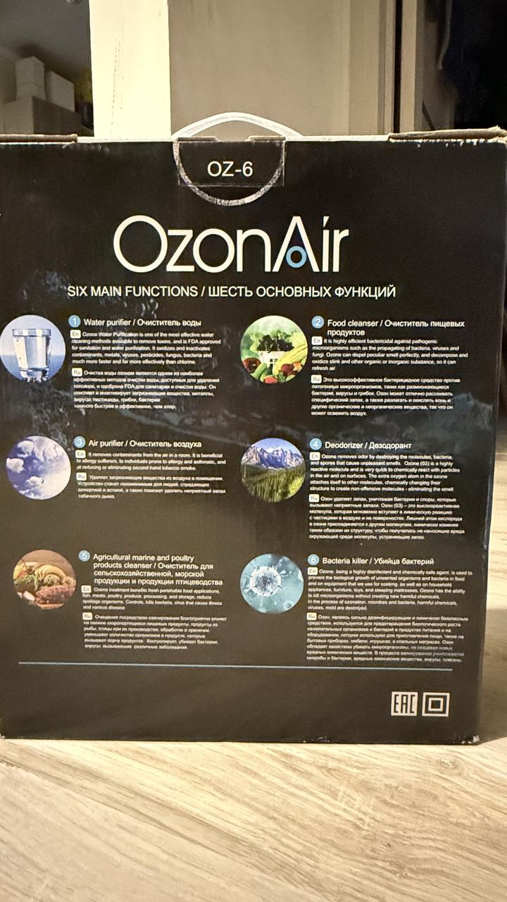 OzonAir OZ-6 — это многофункциональный портативный ионизатор/озонатор, используемый для очистки воздуха в помещениях, а также для обеззараживания воды, овощей, фруктов и мяса, удаляя запахи и бактерии, но требует осторожного использования, соблюдая временные рамки для безопасного озонирования и проветривания, чтобы избежать вреда от высокой концентрации озона, который со временем распадается в кислород. Основные функции и применение: Очистка воздуха, устранитель запахов, обработка продуктов. Артикул: 388377