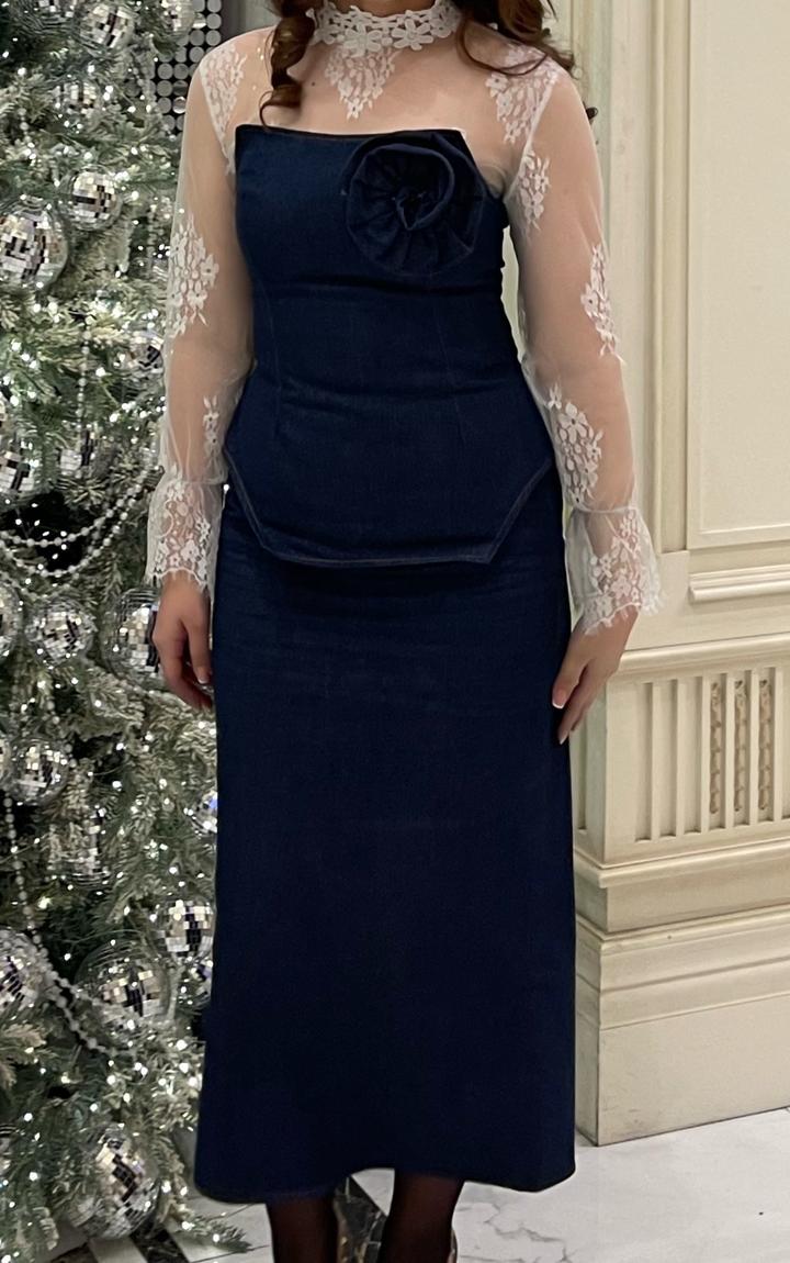Джинсовая двойка: корсет и юбка (белая блузочка в подарок) Размер: L (46) В хорошем состоянии Артикул: 388411