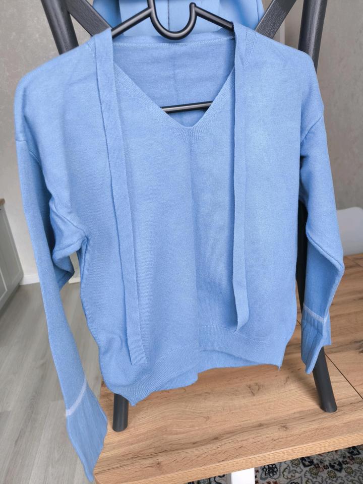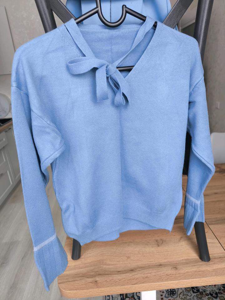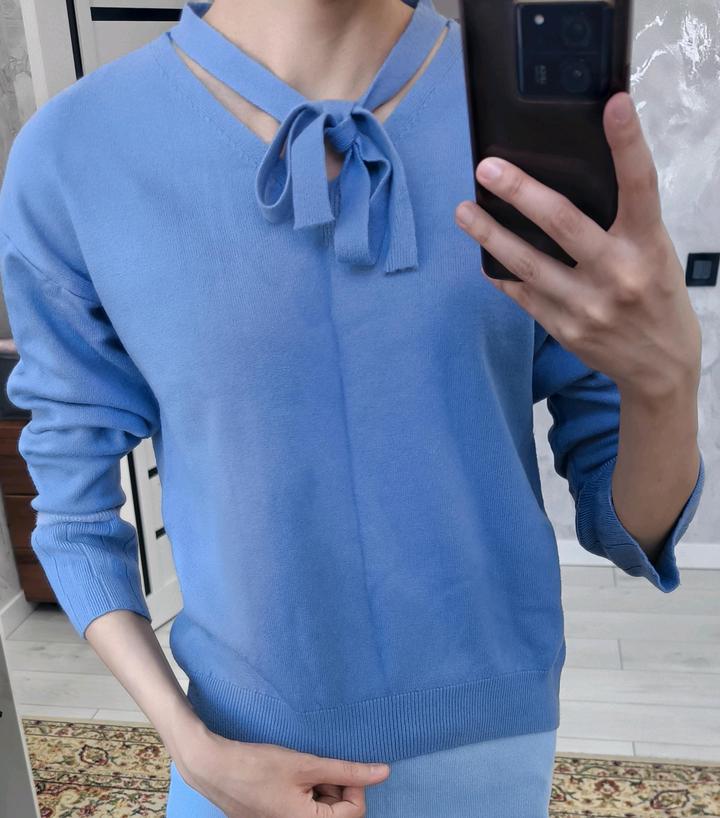Голубая кофта с V-образным вырезом и завязкамиS