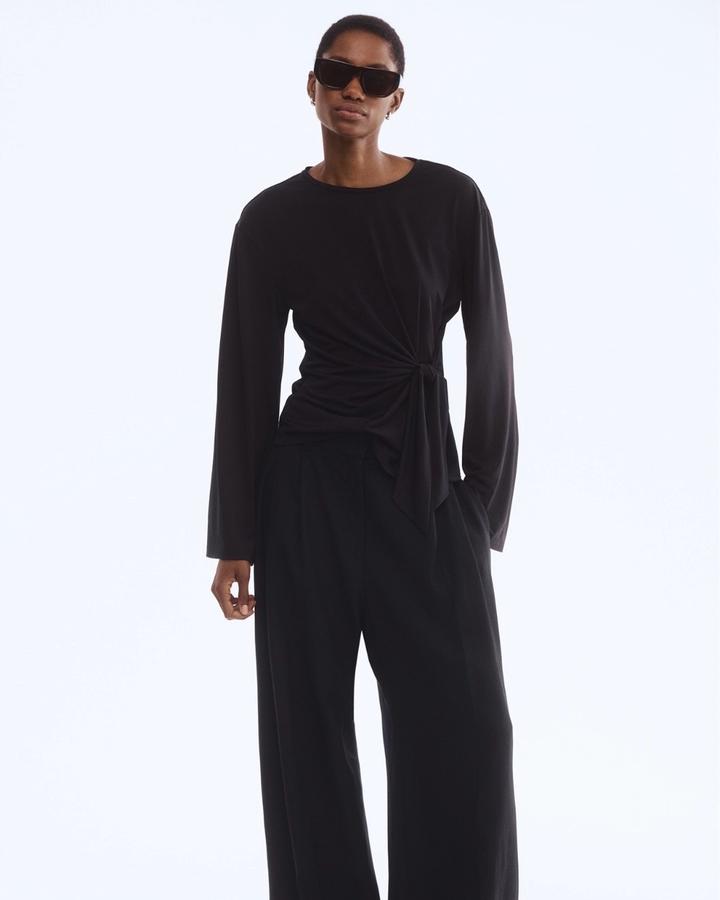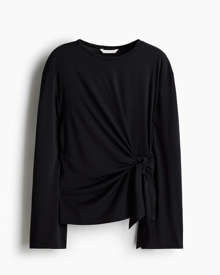 Топ с длинными рукавами из мягкого джерси с круглым вырезом, спущенными плечами и завязкой на талии с одной стороны от H&M. Абсолютно новая. Артикул: 389014