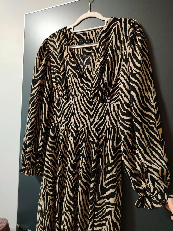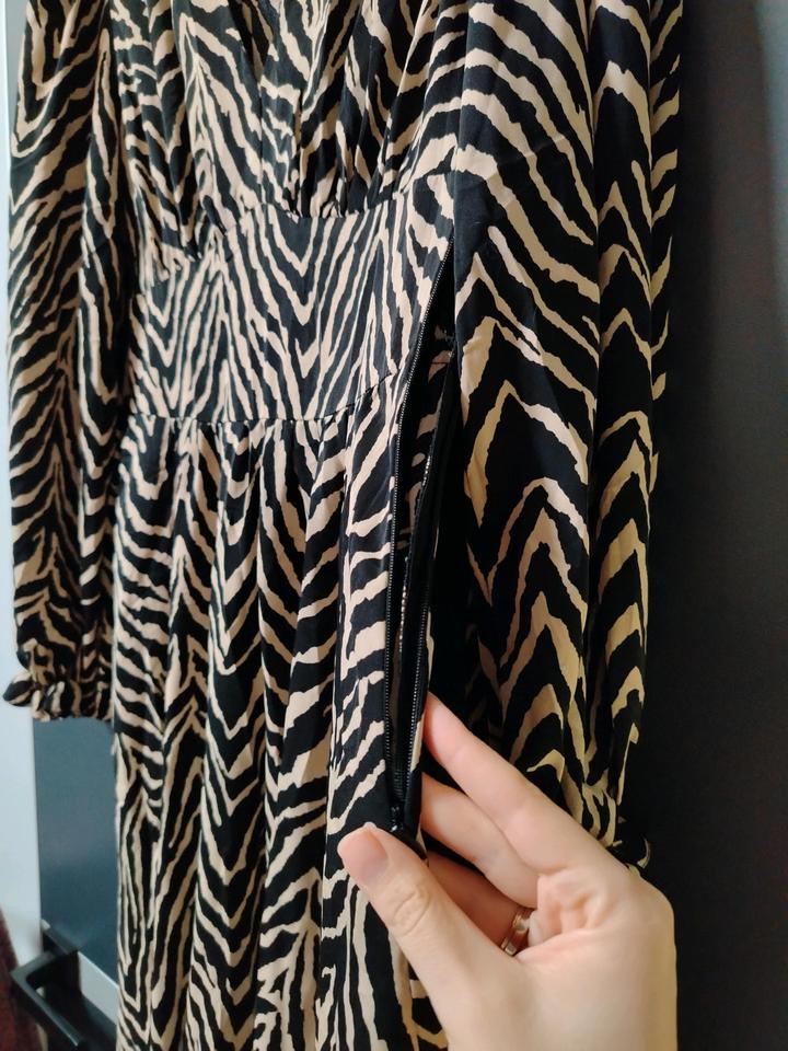 Платье с анималистичным принтом в отличном состоянии. Красивая вставка пол грудь. Рукава на резиночке, сбоку замок. На размер 44-46, мой рост 178 Артикул: 389098