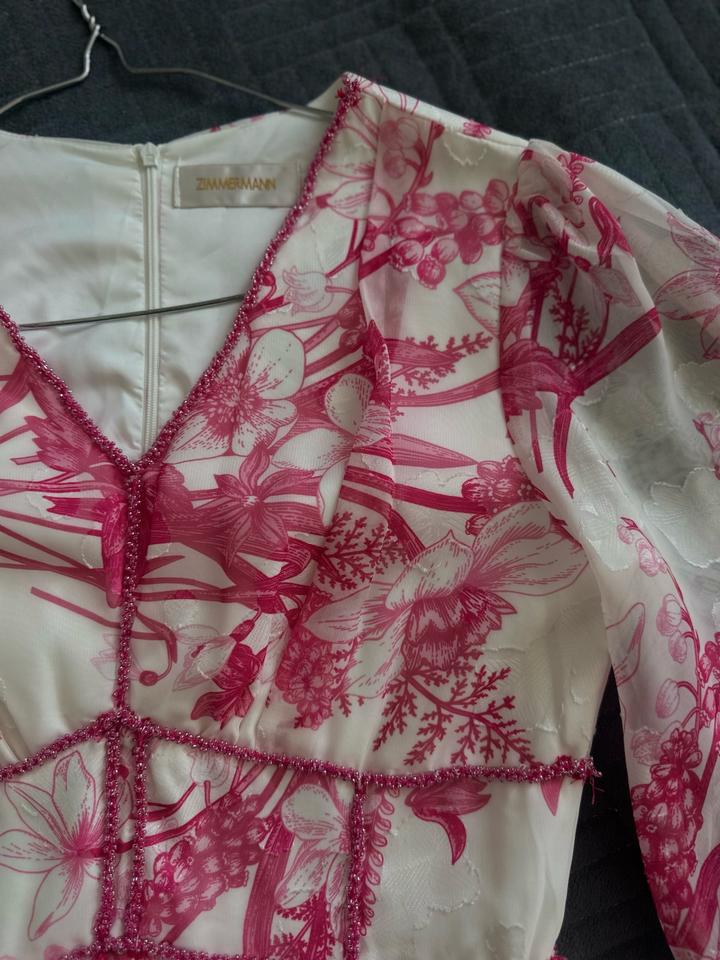Платье под Zimmermann, с невероятно красивым цветочным принтом и вышивкой из бисера. Отлично подойдёт на разные мероприятия: той, день рождения, гендер пати. Размер С-М, но также подойдет для беременяшек. Артикул: 390055