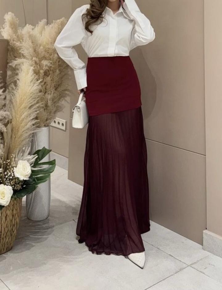 Бордовая юбка макси длины Надевала 1 раз Обхват талии 65-66 см Длина короткой юбки 34 см Вся длина 102-104 см Артикул: 390326