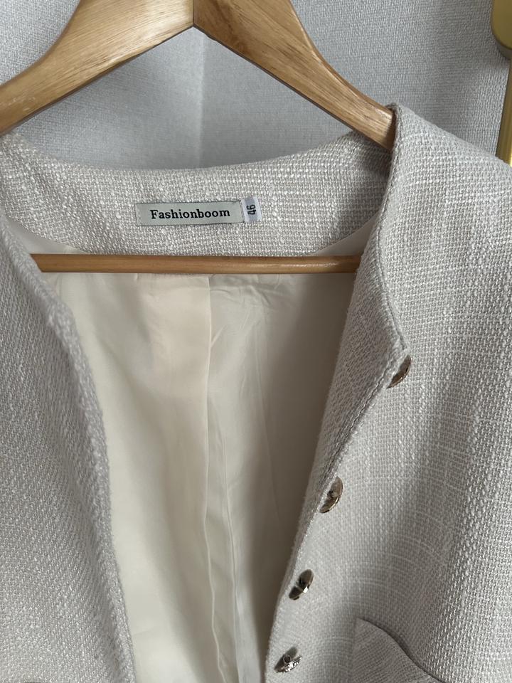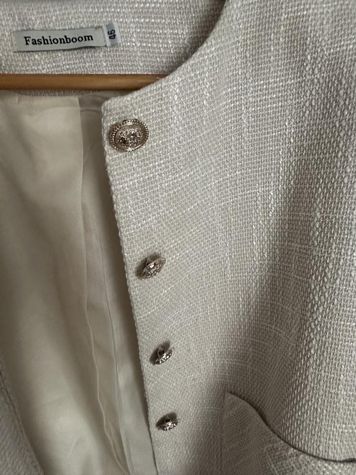 Белый пиджак из твида, материал плотный, карманы рабочие. Артикул: 390342