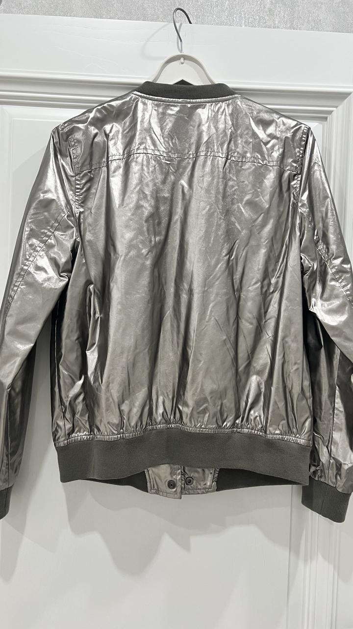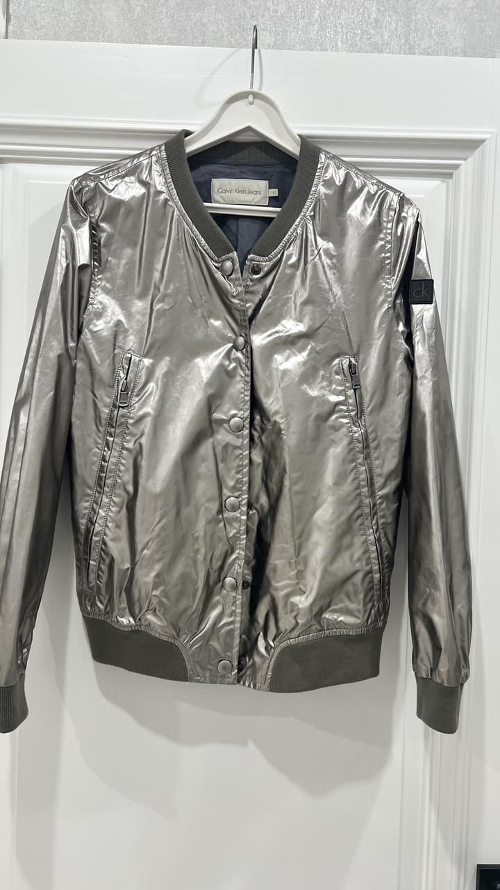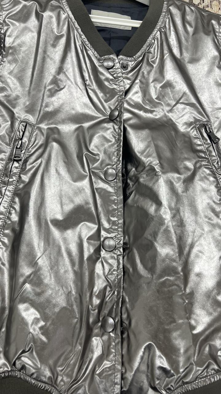 Продается куртка бомбер металического цвета, бренда Calvin Klein. Спереди на кнопках по бокам карманы на замках, рукава и воротник на манжетах. Очень мягкая и стильная, внутри подкладок из хлопка. В отличном состоянии, Размер 44- 46. Цена 10000 тенге Артикул: 390432