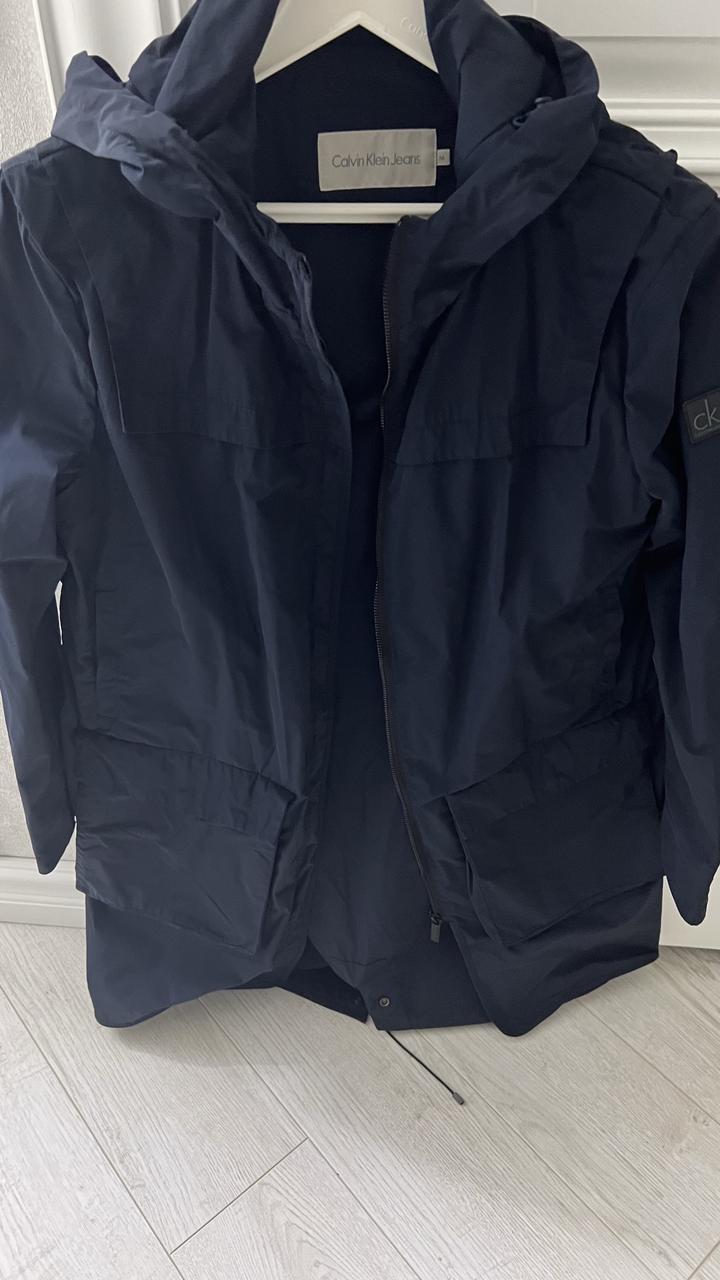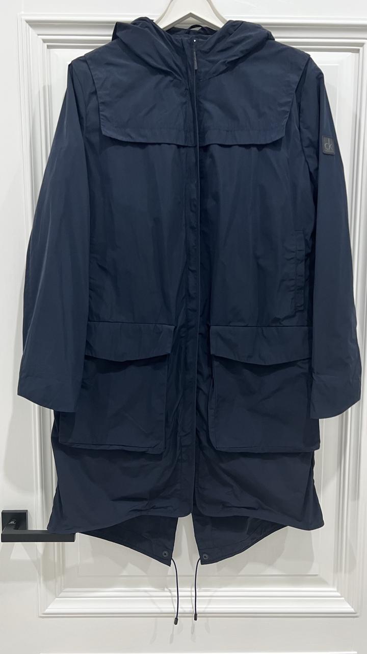 Продается парка дождевик, Бренда Calvin Klein. Темно синего цвета с капюшоном, с накладными карманами , прямого кроя.спереди замок, без подклада, сезон теплая весна-осень. В отличном состоянии без следов носки.Размер 42-44. Цена 10000 тенге. Артикул: 390510