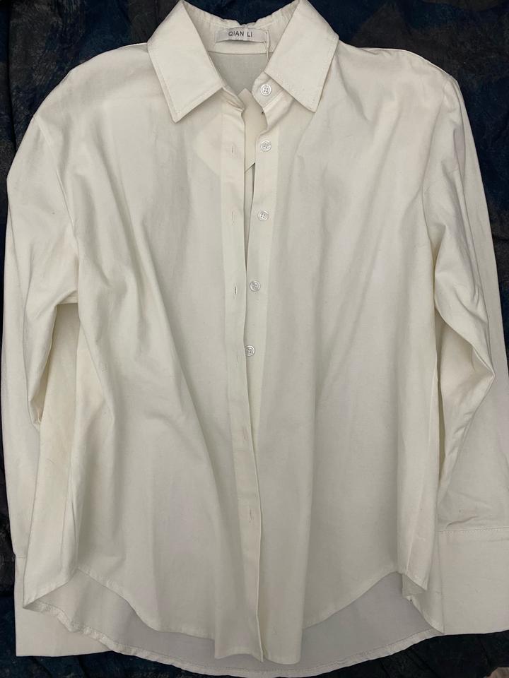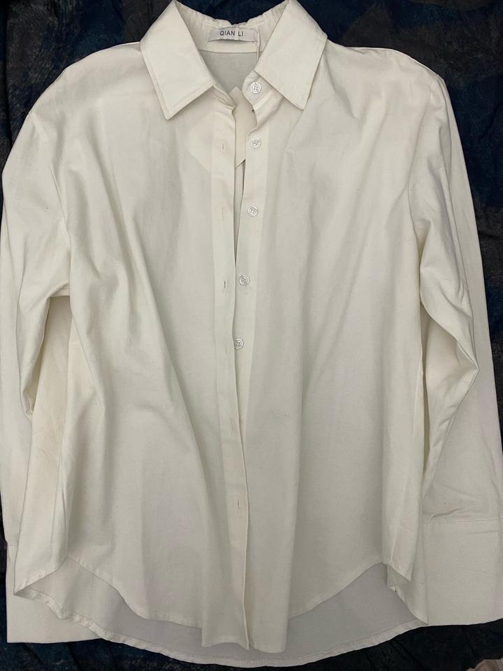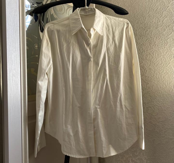 Новая корейская рубашка. Цвет не чисто белый, немного похож на цвет слоновой кости или молочный. Подойдёт на размер 42-44(s-m). Материл плотный. Артикул: 390862