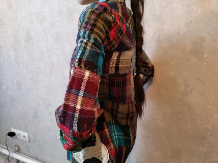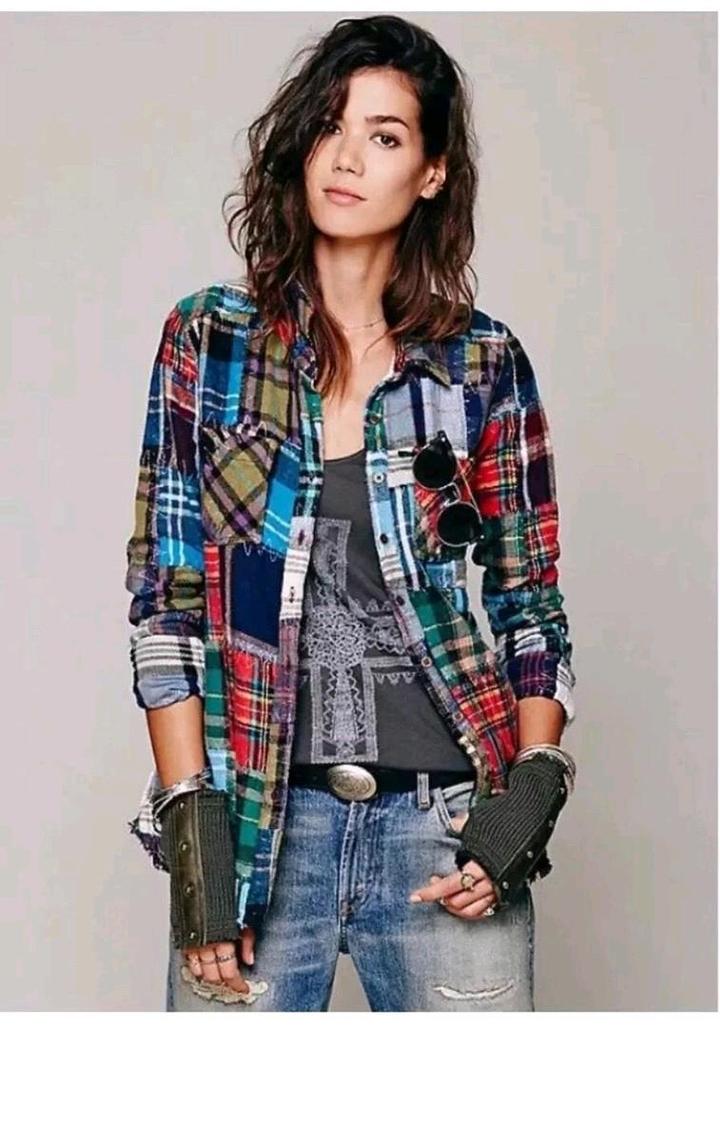 Рубашка бренда free people, с биркой не носили. Покупали в винтажке/секонде. Очень теплая, как будто из разных лоскутков стиль пэтчворк. Есть вставки сбоку. Девушка на фото носит xs, рост где-то 160 см. Первые два фото из интернета. Артикул: 391110