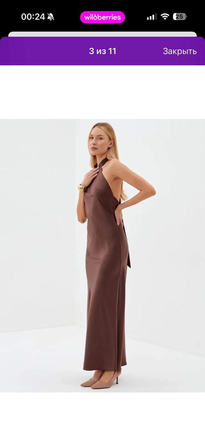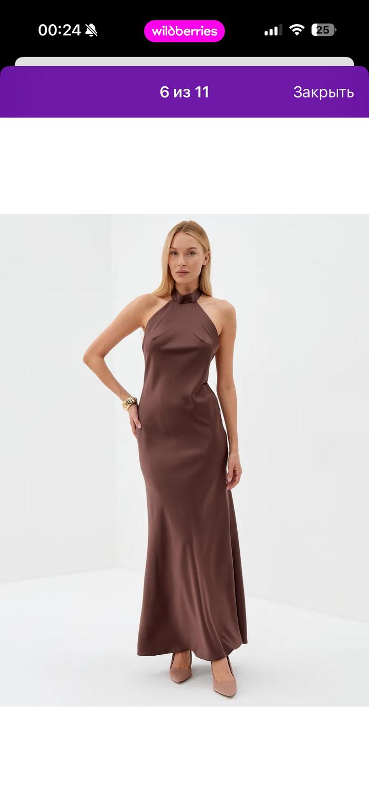 Коричневое платье в пол, сзади завязки, так же есть замок. Размер S, материал атлас, надевала 1 раз на торжество Артикул: 392008