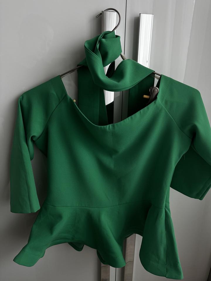 Двойка в зеленом цвете,юбка + блузка с завязкой,новое,на размер m,l Артикул: 392284
