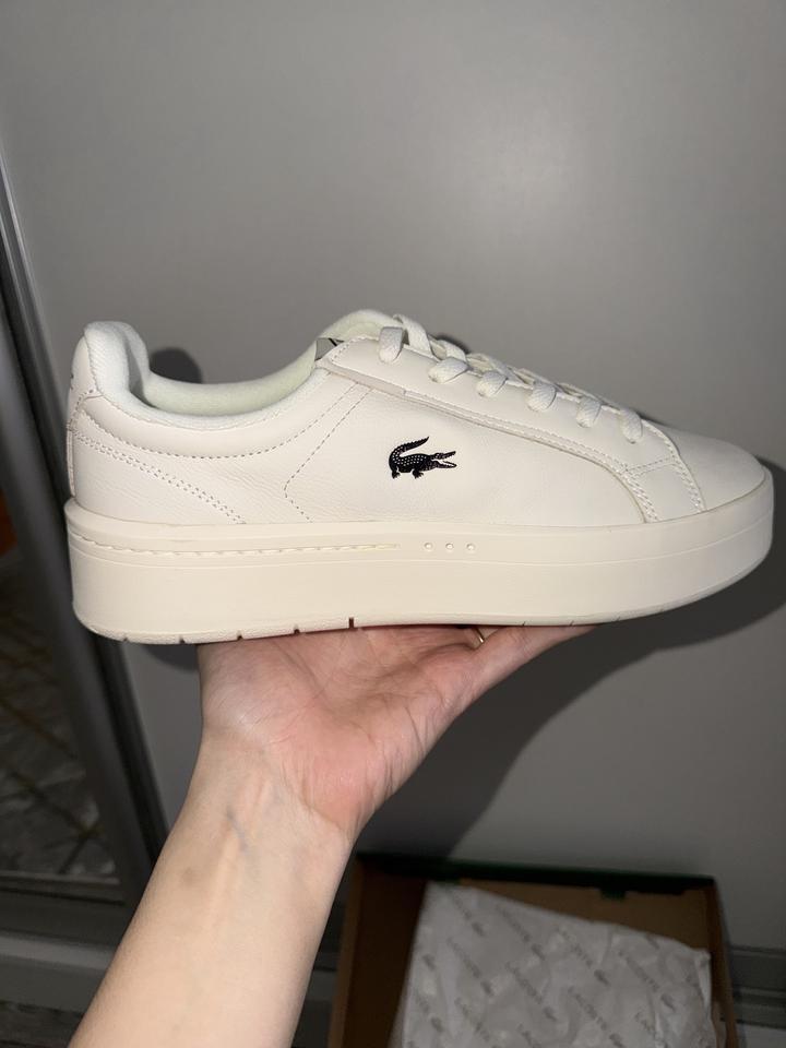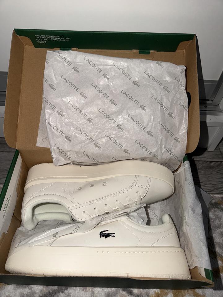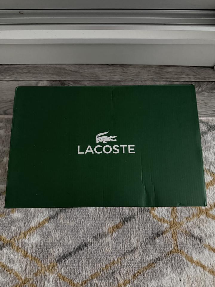 Кроссовки кеды Lacoste оиигинал., заказывала с Америки с хорошей скидкой в чёрную пятницу. Качество очень классное. К сожалению размер не подошёл. Не маломерят, 41 размер, но по больше наверное подойдёт на 42, по стельке почти 27,5 см Артикул: 393840